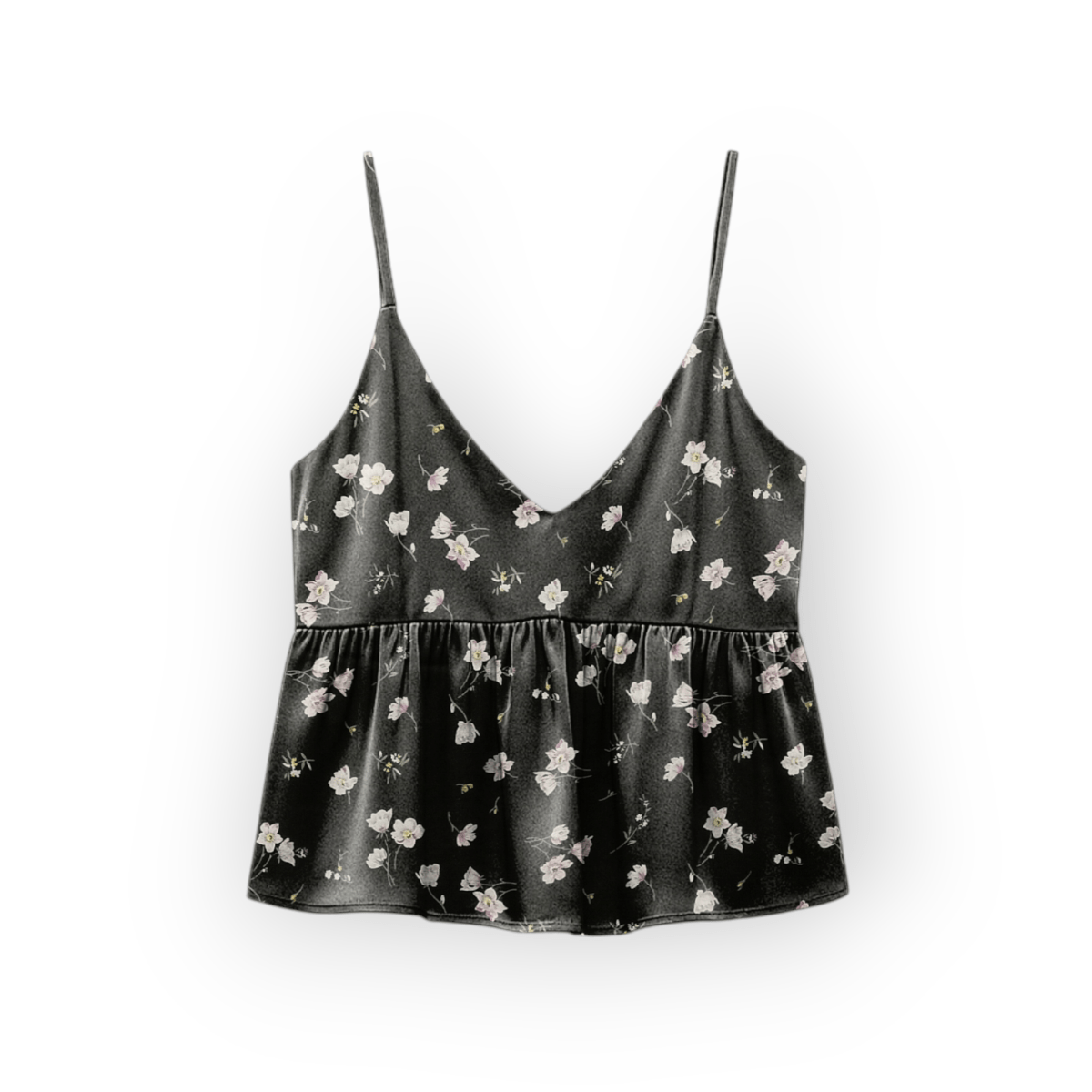 تاپ بندی چین دار گلدار گل آناگالیس با زمینه مشکی یقه هفت
