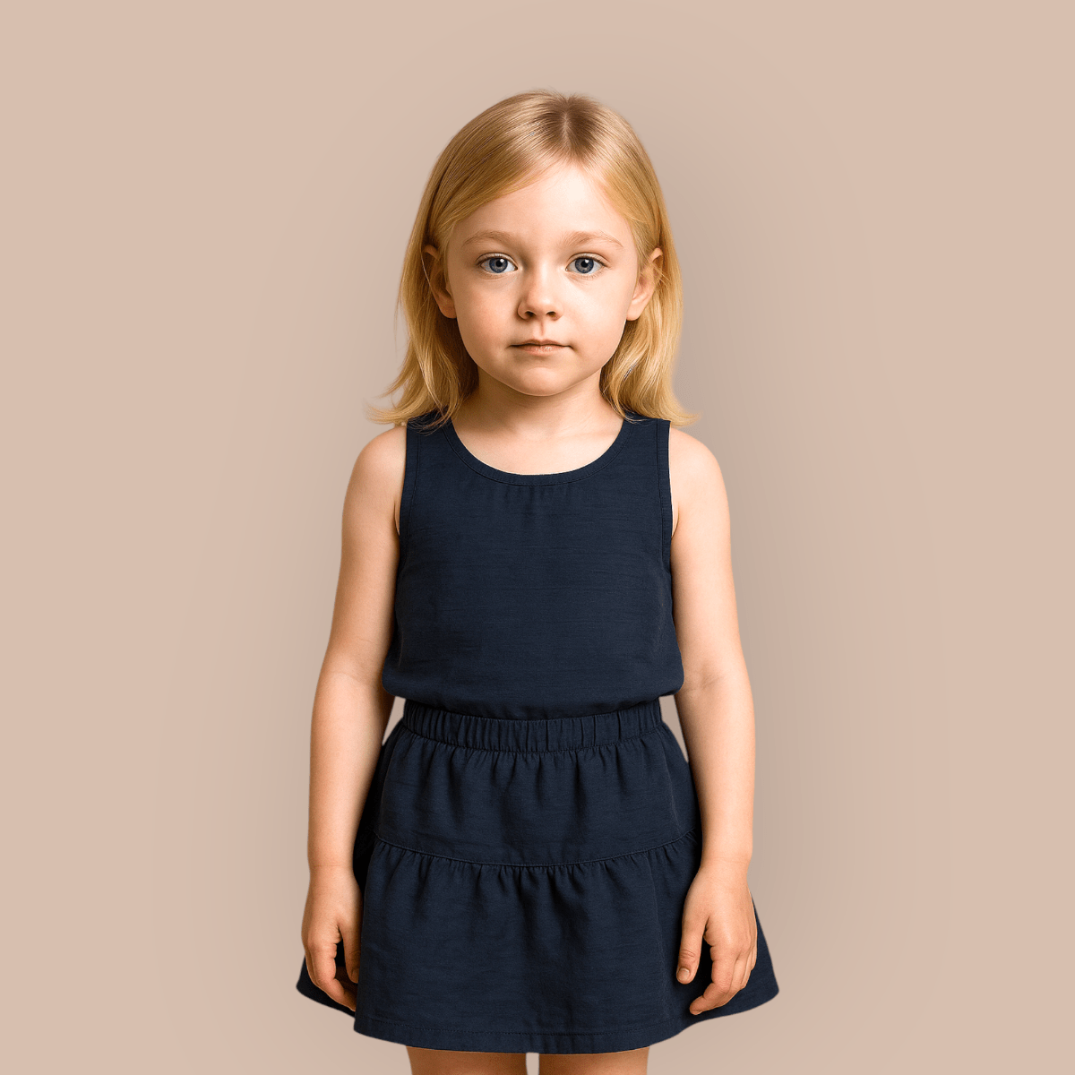 تاپ دامن کودک نخی آبی نفتی 2 تا 11 سال