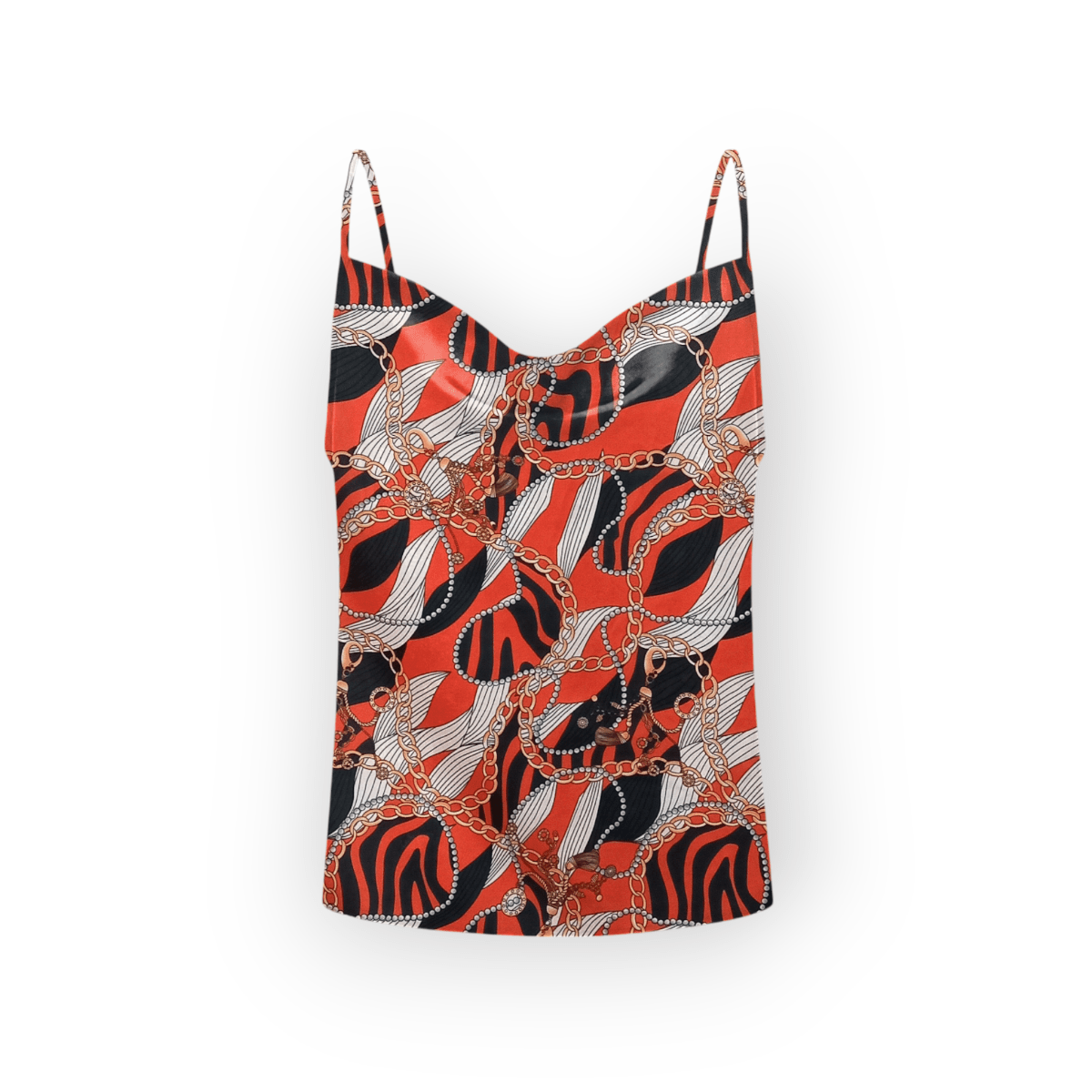 تاپ یقه شل طرح زنجیر با زمینه قرمز بندی کرپ نخ