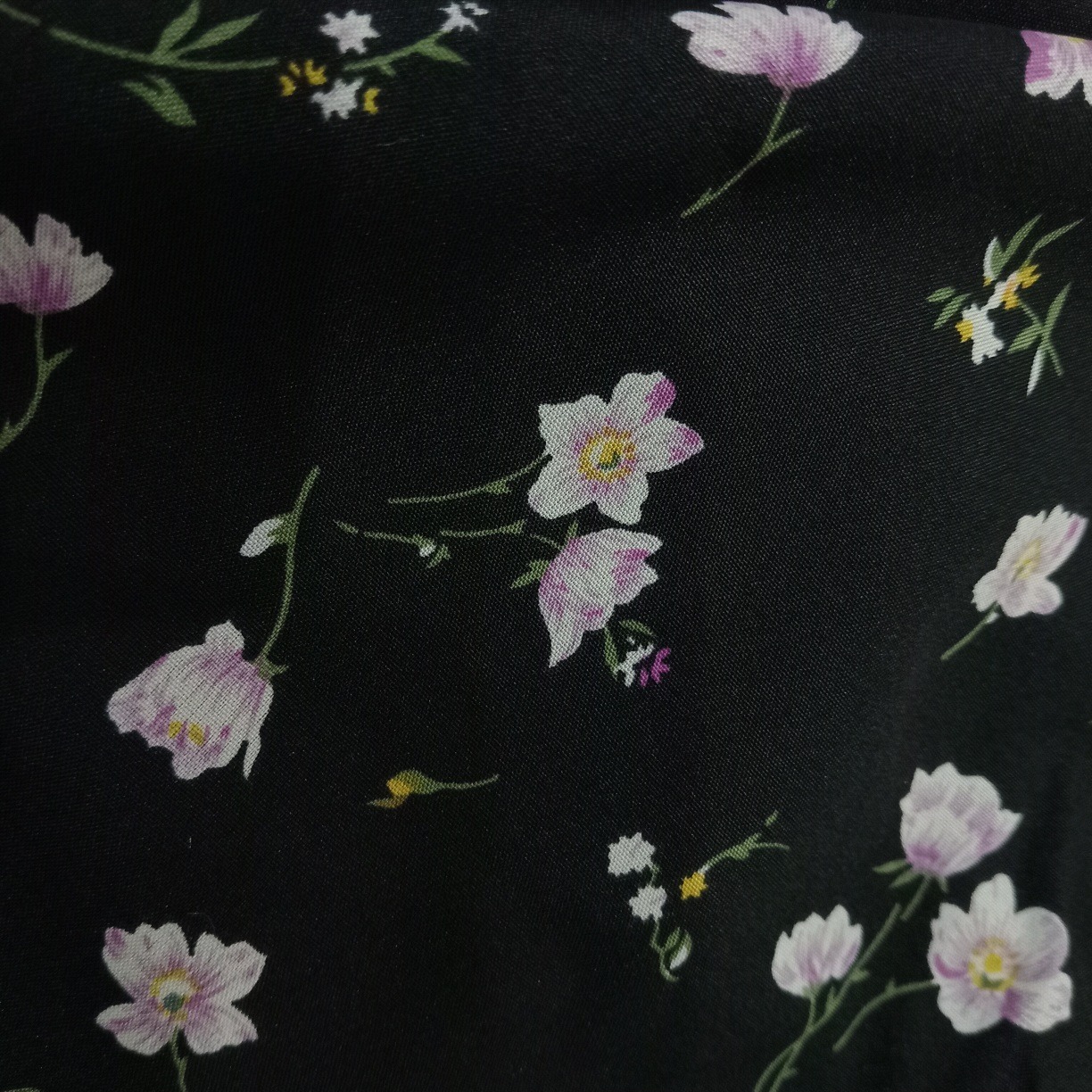 تاپ یقه هفت گلدار گل آناگالیس با زمینه مشکی بندی کرپ نخ سایز 32 تا 62