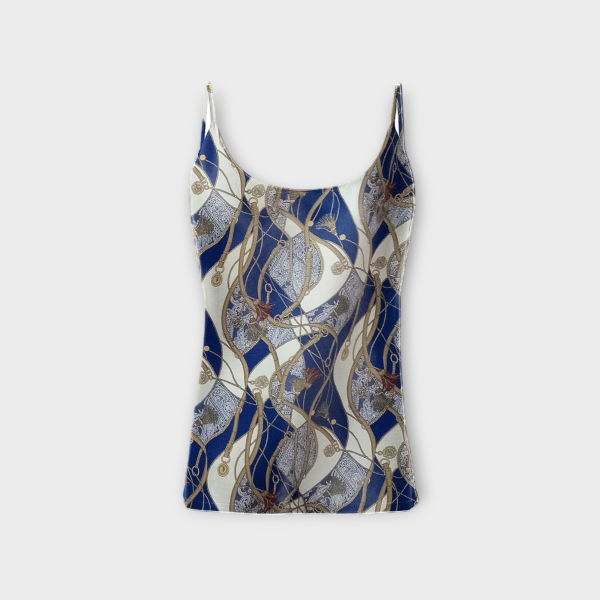 تاپ یقه گرد طرح زنجیر بندی کرپ نخ