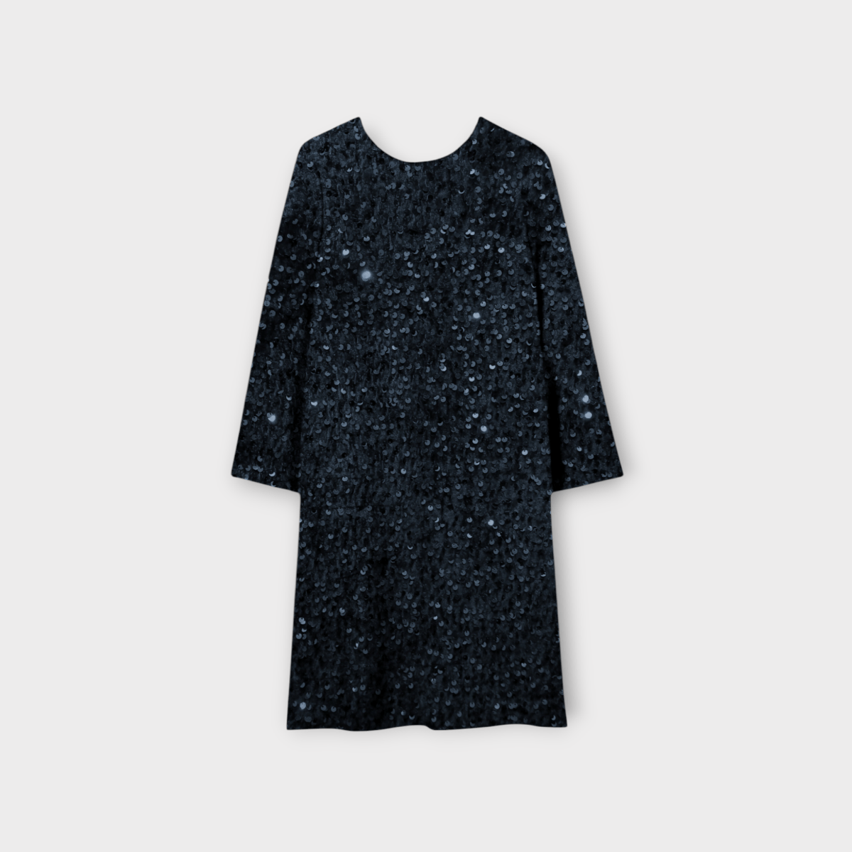 تونیک مخمل پولکی آبی نفتی سایز 32 تا 62 (رنگبندی موجود)