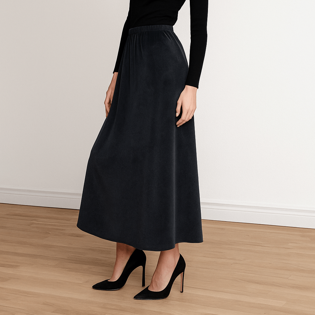 دامن بلند کمرکش مخمل مشکی ای لاین
