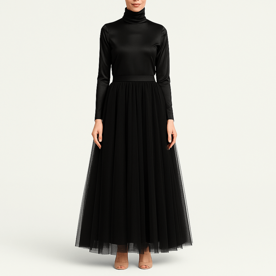 دامن توری پشت کش مشکی مجلسی سایز 32 تا 62 قد دامن 100cm (رنگبندی موجود)