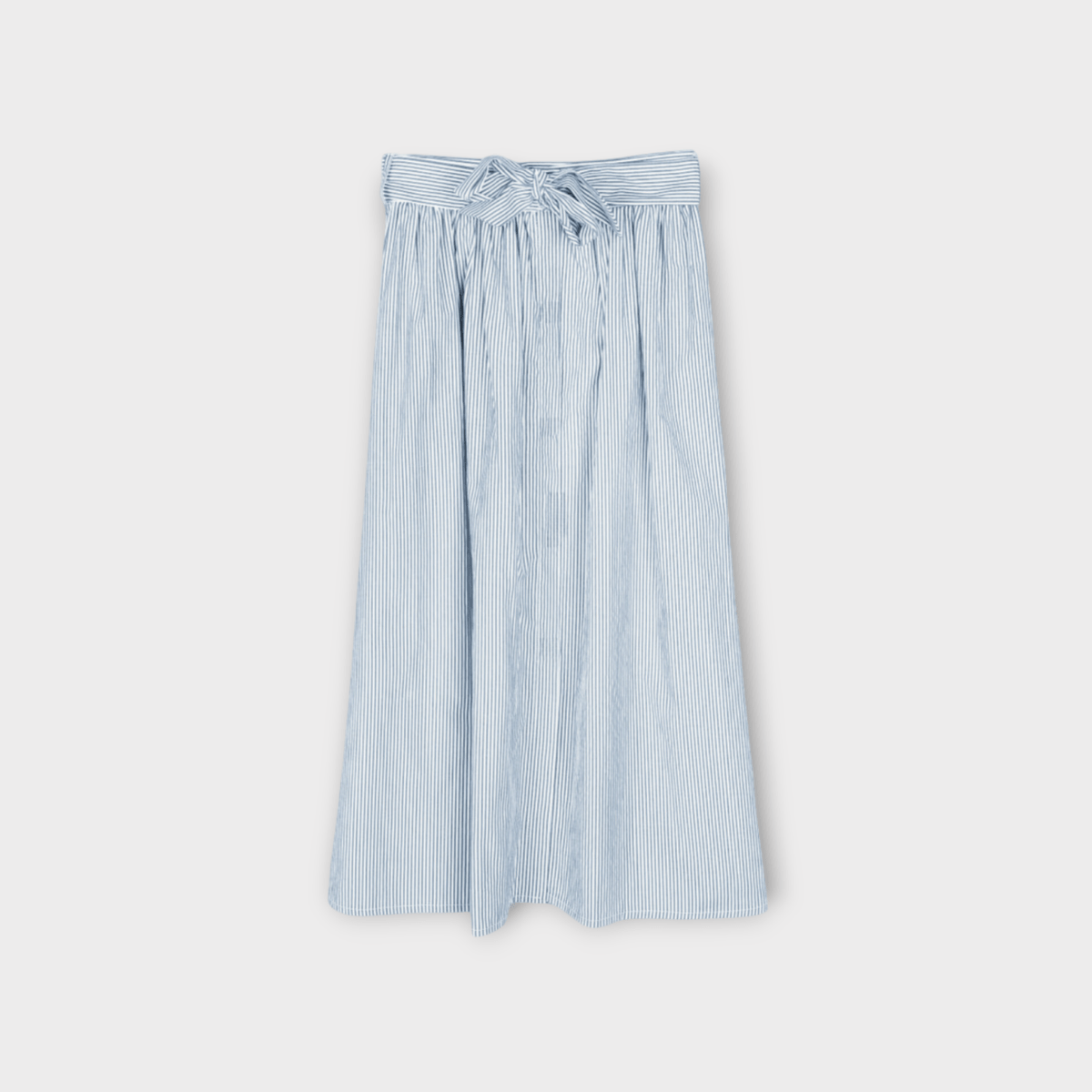 دامن راه راه سفید آبی میدی کمربنددار چیندار پشت کش