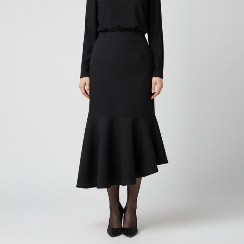 دامن فلوئنس نامتقارن مجلسی مشکی سایز 32 تا 62 (رنگبندی موجود)