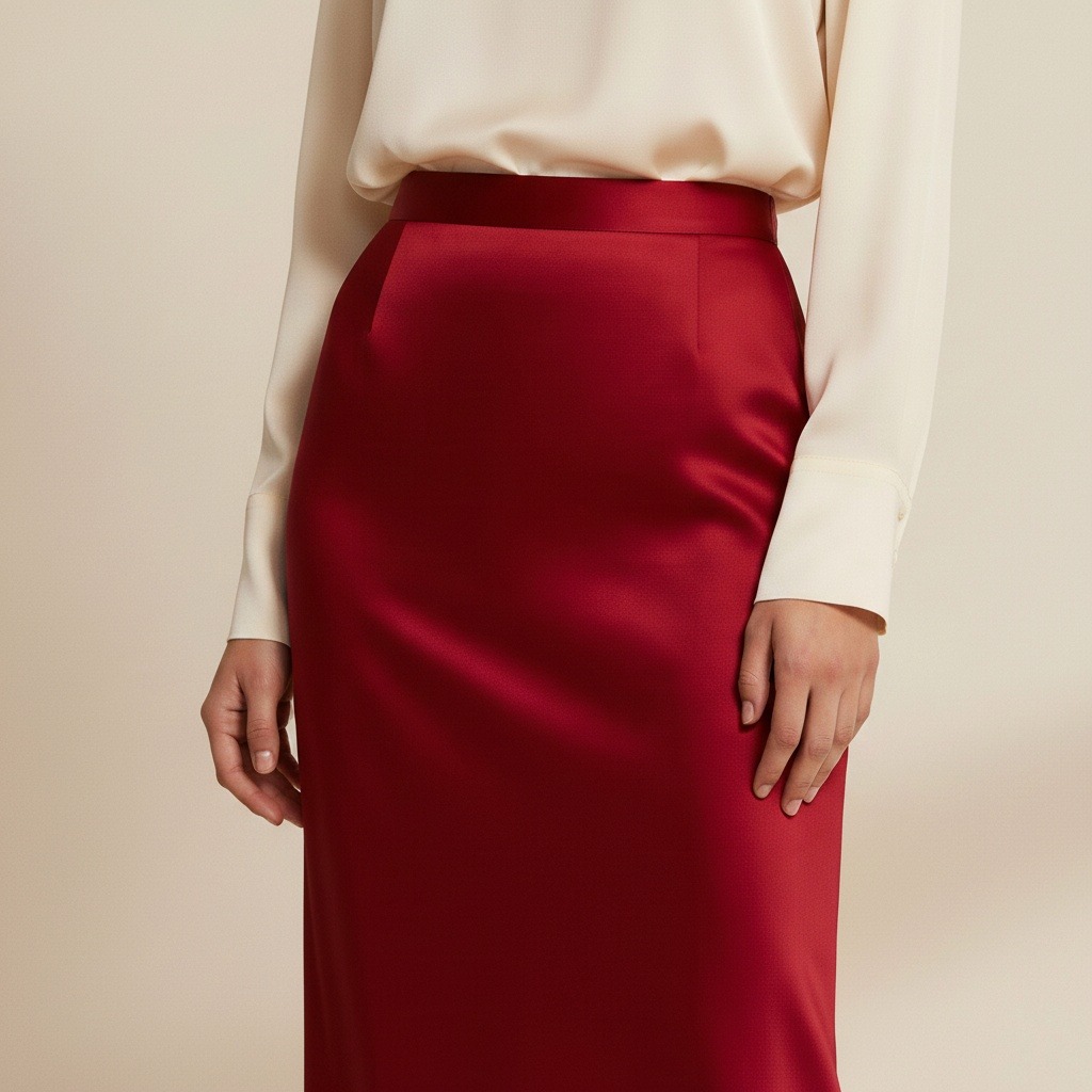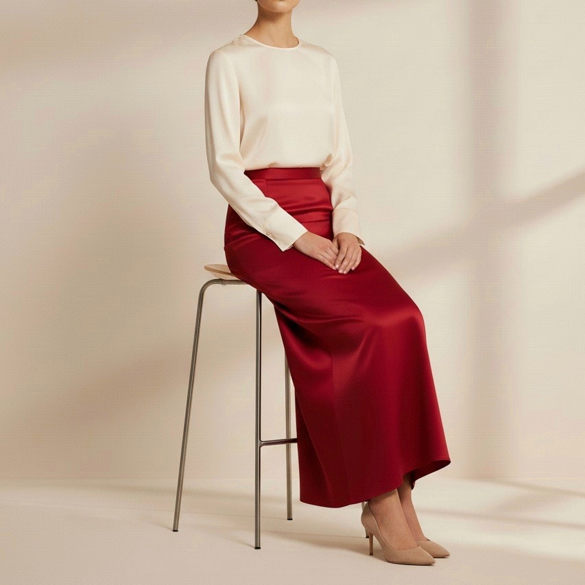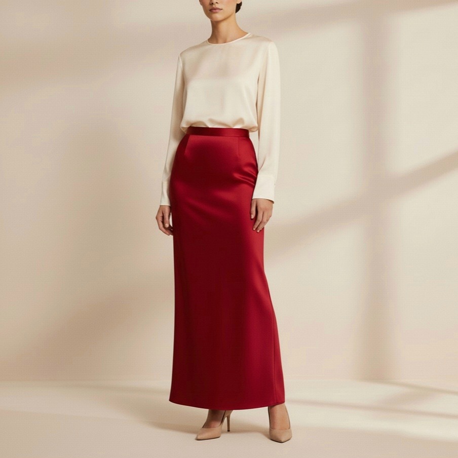 دامن مجلسی راسته بلند قرمز ساتن
