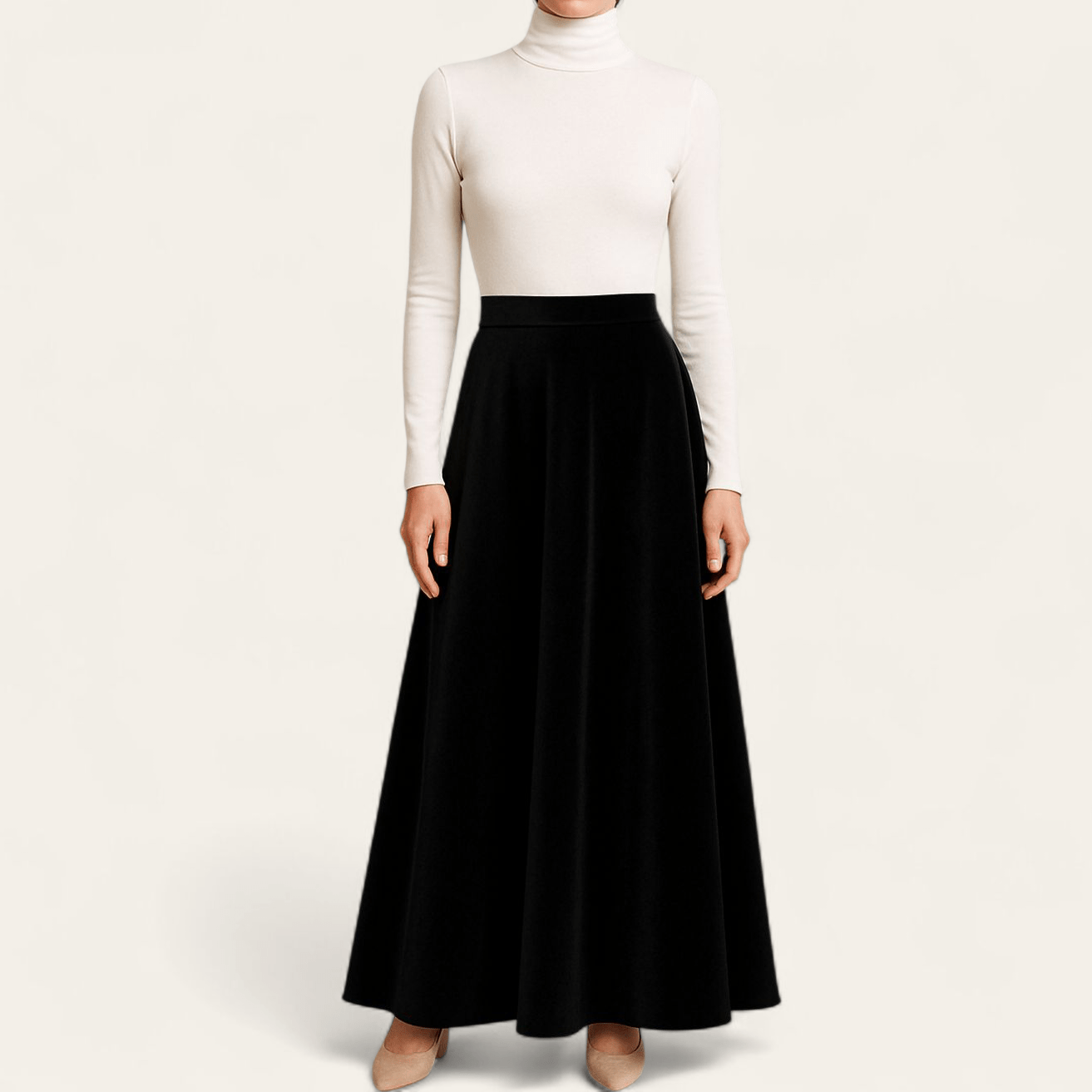 دامن مخمل بلند پشت کش نیم کلوش مشکی سایز 32 تا 62 قد 100cm(رنگبندی موجود)