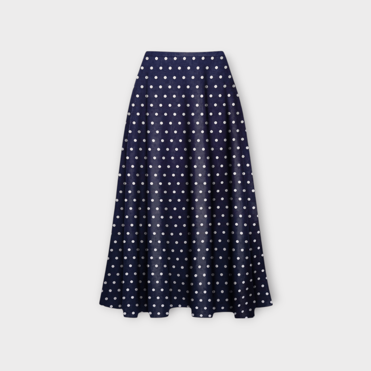 دامن میدی خالدار آبی نفتی نیم کلوش پشت کش کرپ نخ قد 80cm سایز 32 تا 62