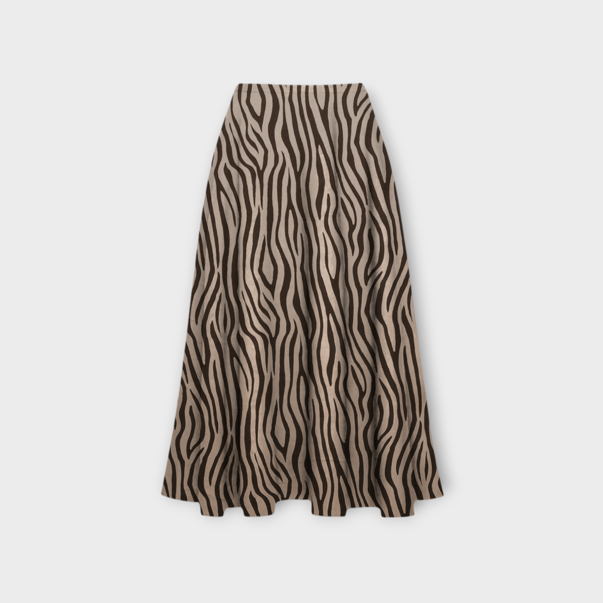 دامن میدی زبرا نیم کلوش پشت کش کرپ نخ قد 80cm