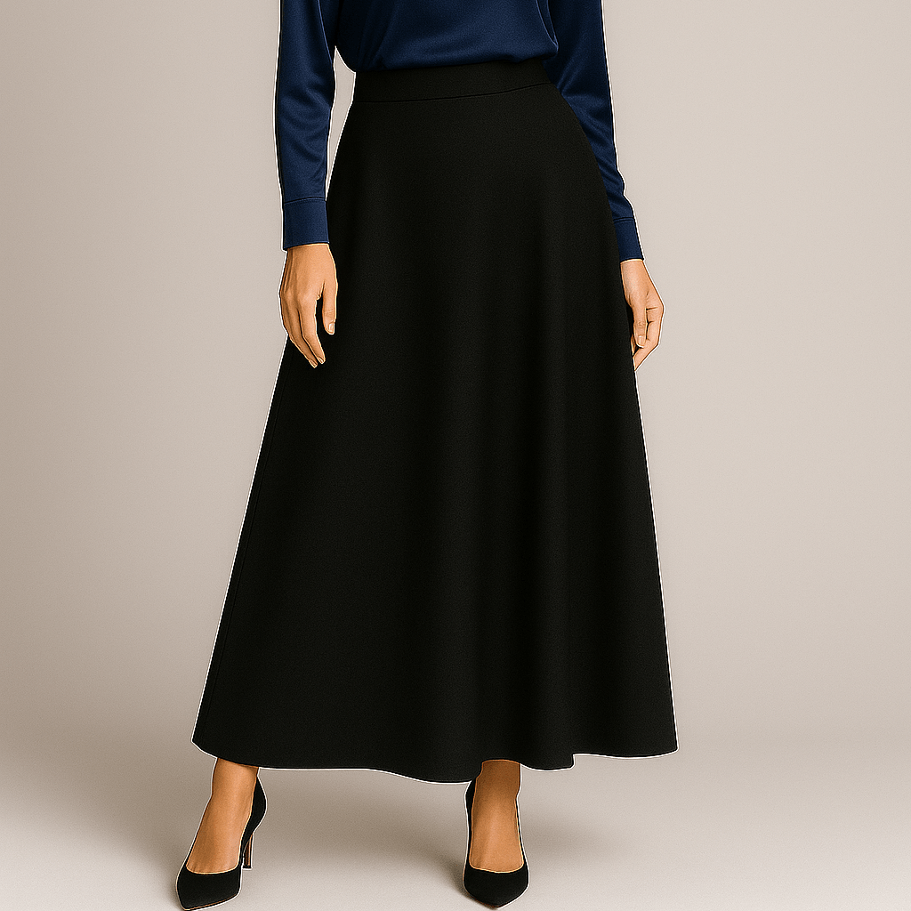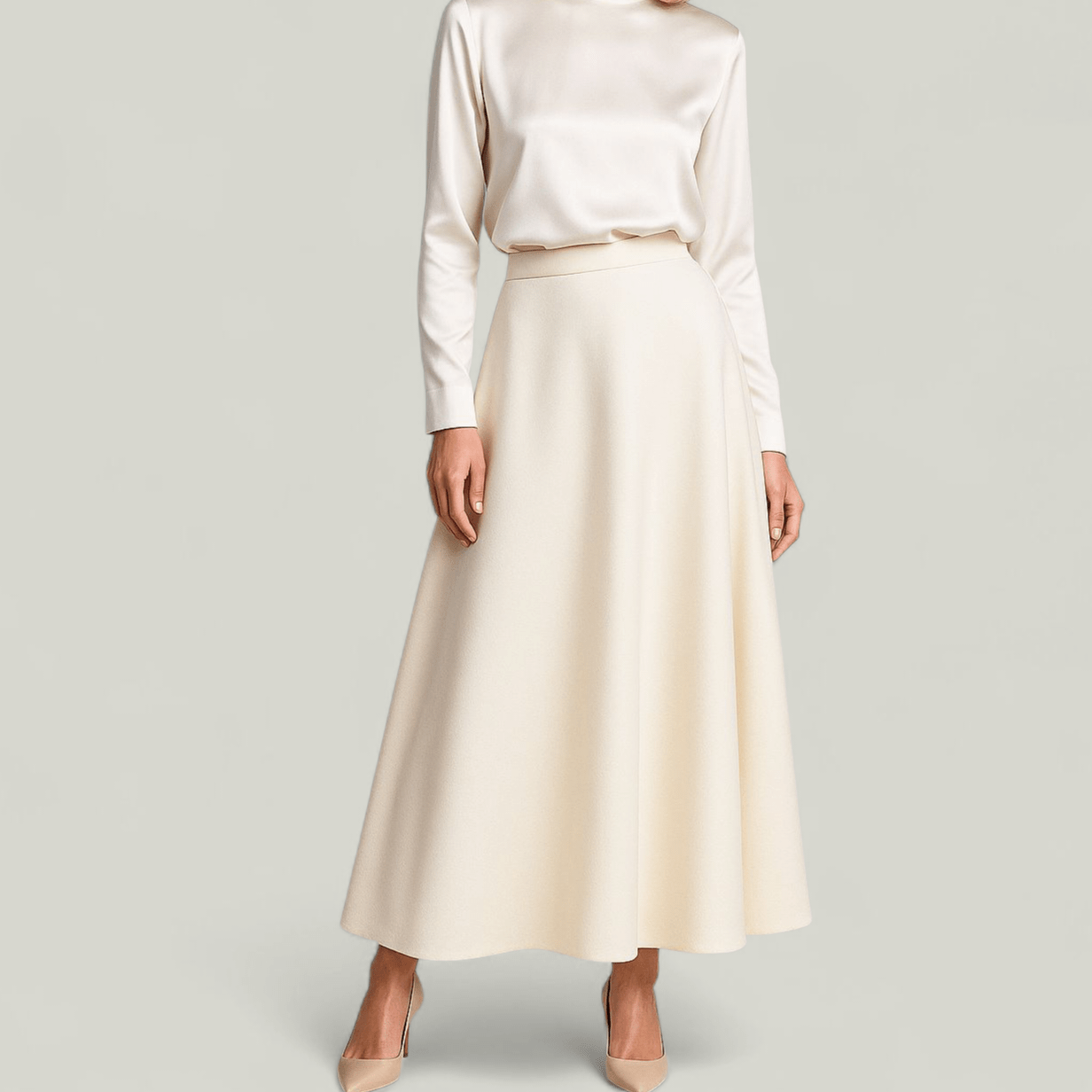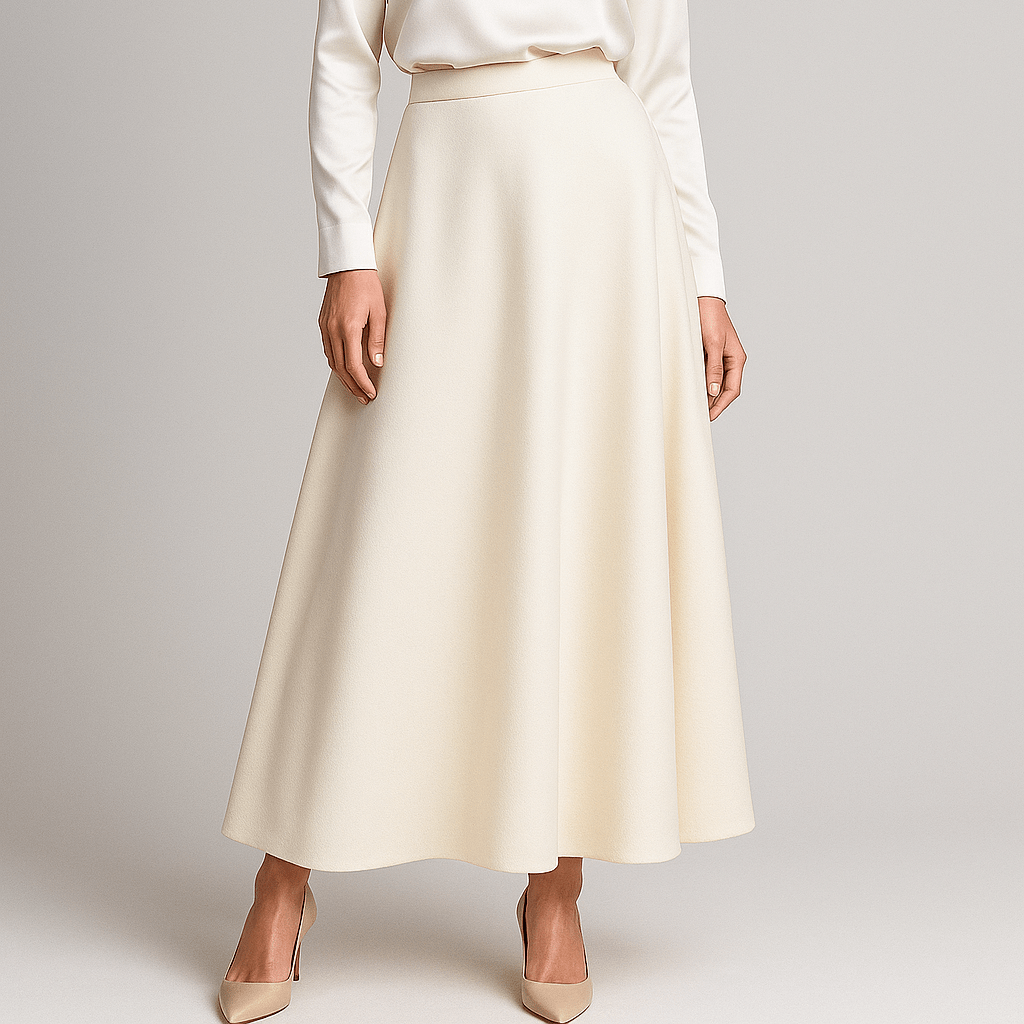 دامن میدی مجلسی کرپ مازاراتی سفید پشت کش نیم کلوش سایز 32 تا 62 قد 90cm (رنگبندی موجود)