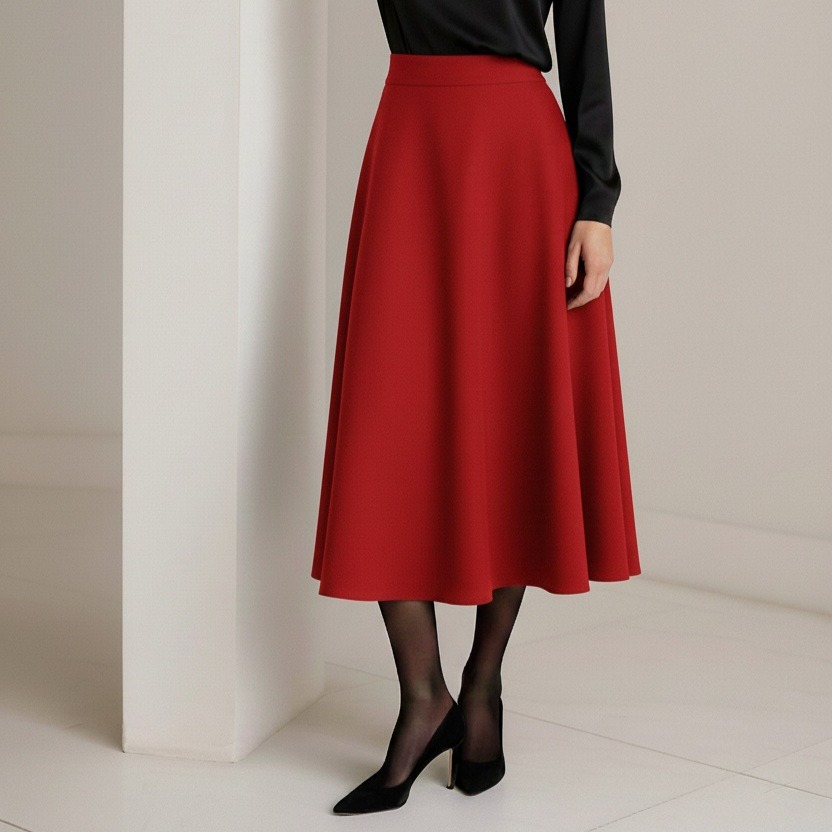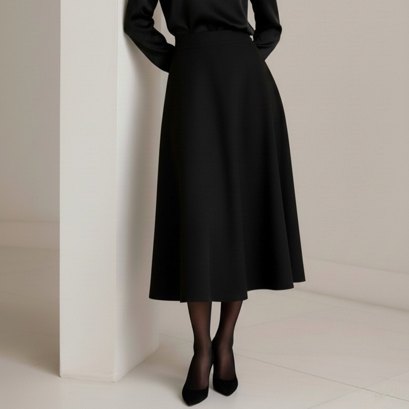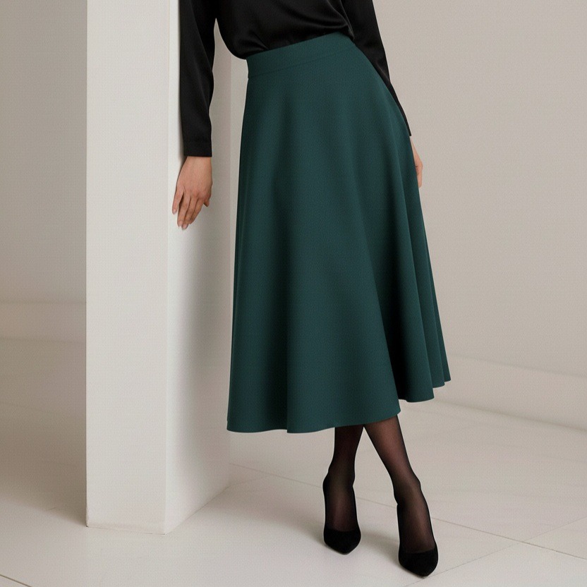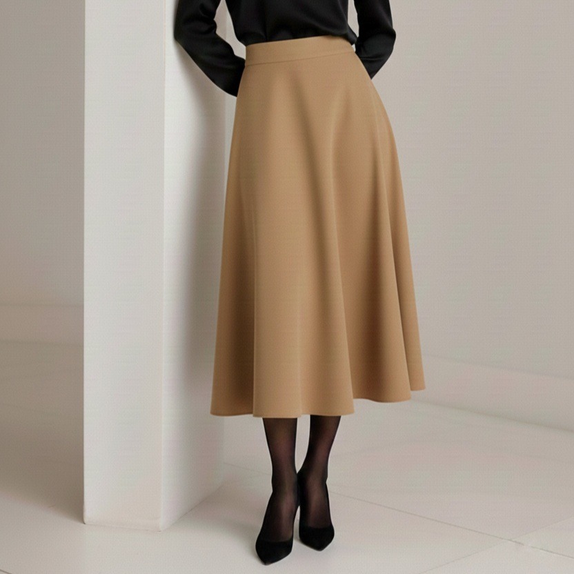 دامن میدی کرپ پشت کش قهوه ای نیم کلوش قد 80cm سایز 32 تا 62 (رنگبندی موجود)