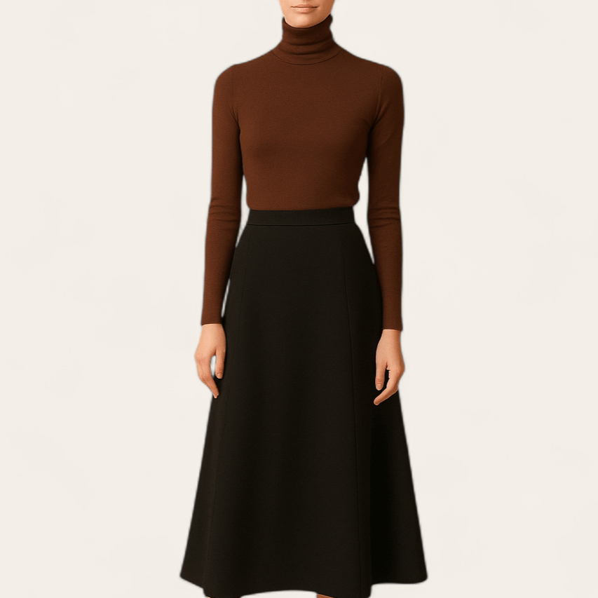 دامن میدی کمرکش کرپ نخ مشکی ای لاین