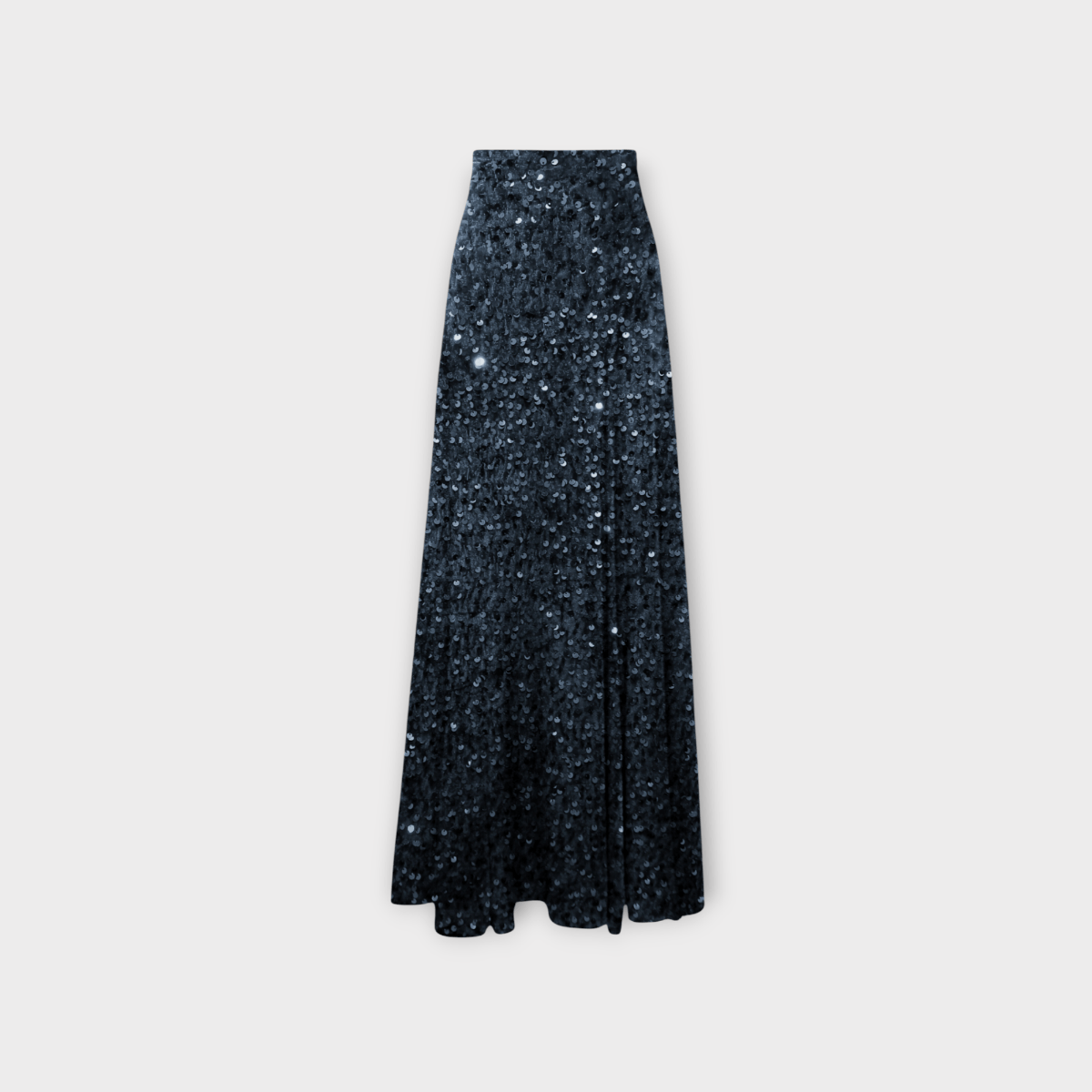 دامن نیم کلوش مخمل پولکی بلند پشت کش مشکی