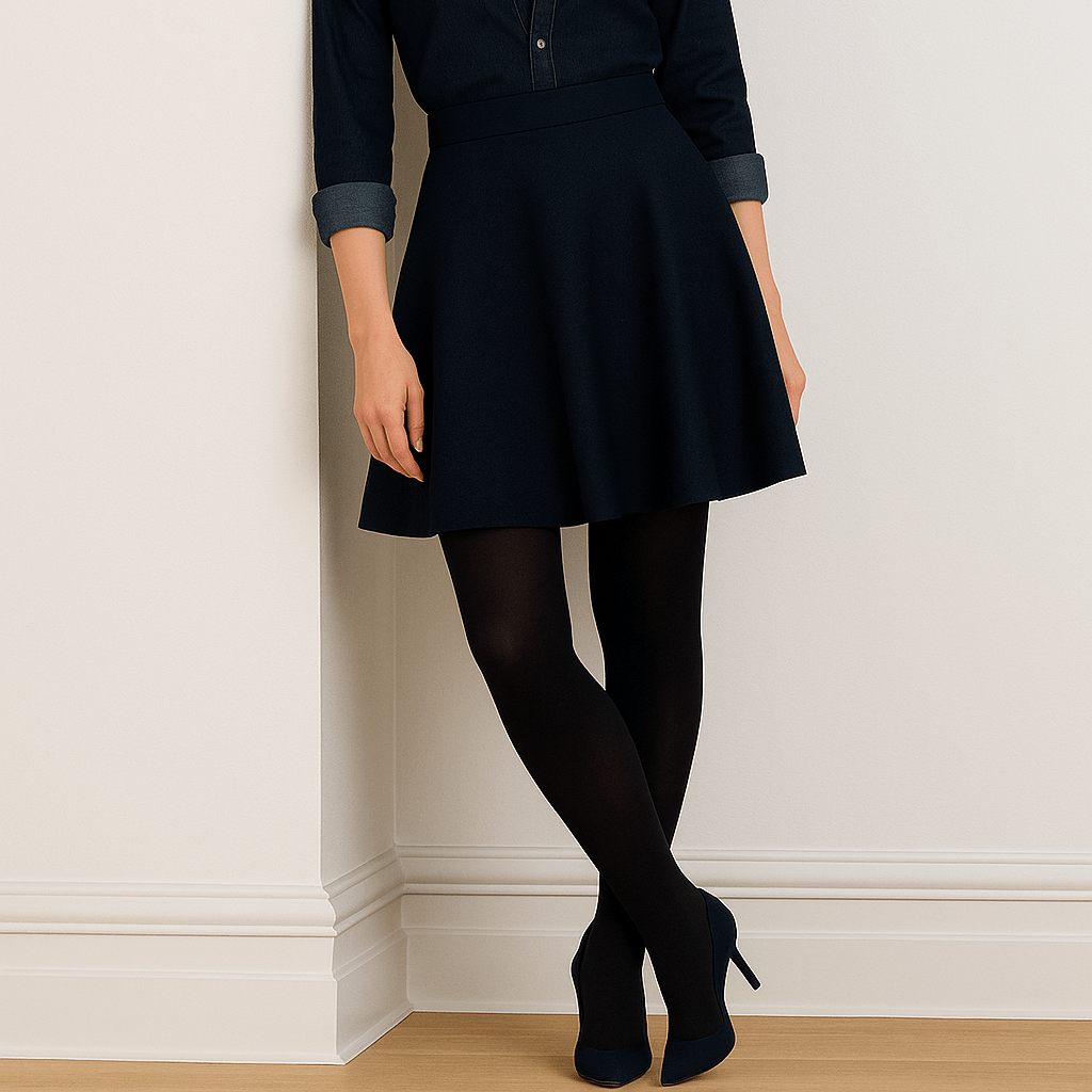 دامن کرپ پشت کش مشکی سایز 32 تا 62 نیم کلوش قد 35cm (رنگبندی موجود)