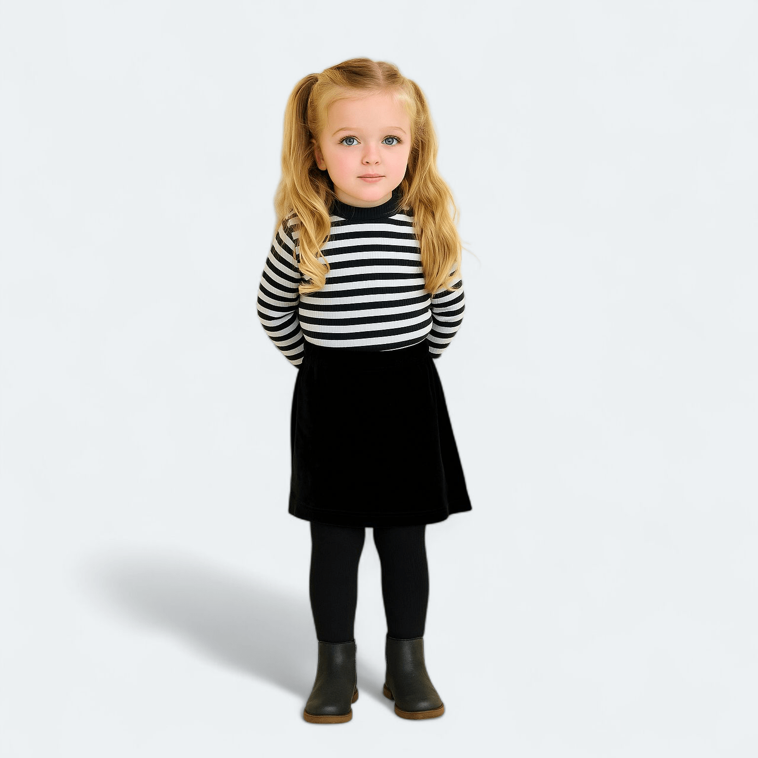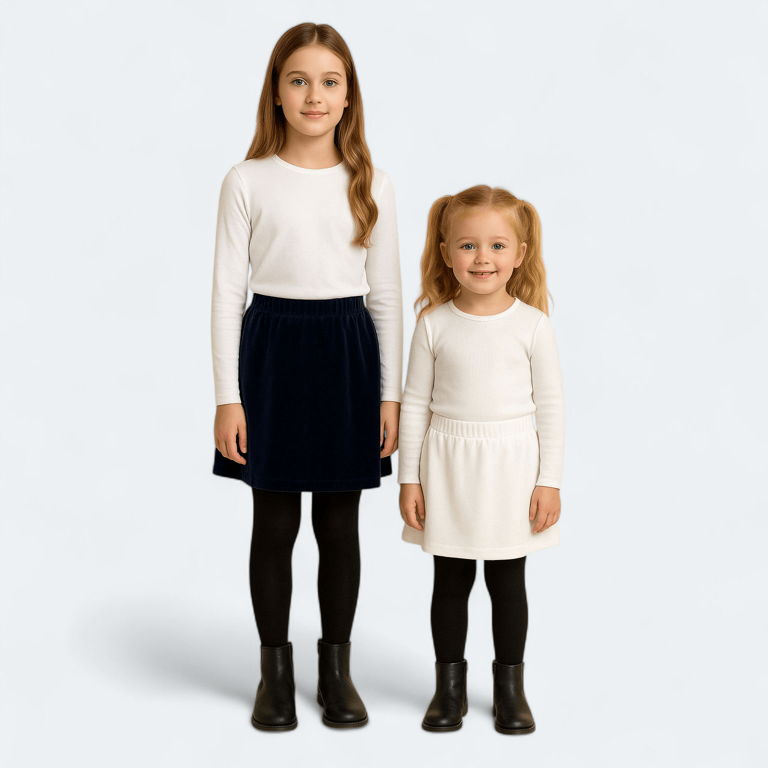 دامن کودک مخمل کوتاه نیم کلوش کمرکش مشکی سایز بندی 2 تا 11 سال (رنگبندی موجود)