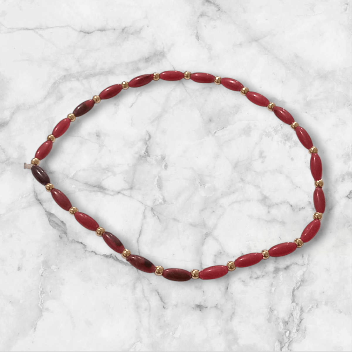 دستبند مهره کشی قرمز و طلایی دست ساز
