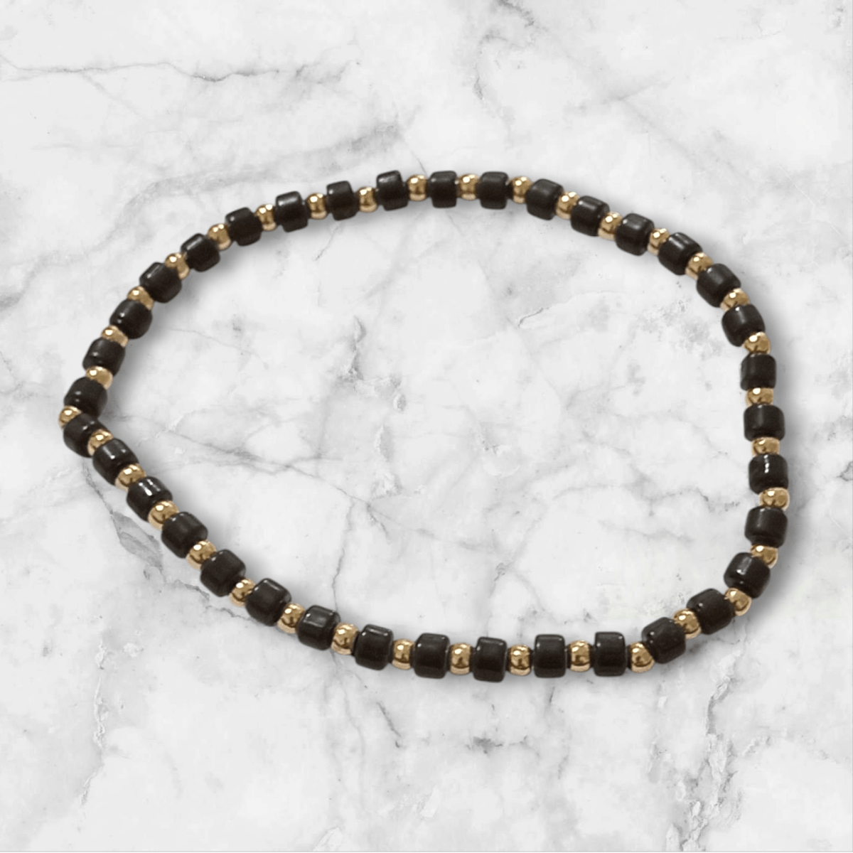 دستبند مهره کشی قهوه ای طلایی دست ساز