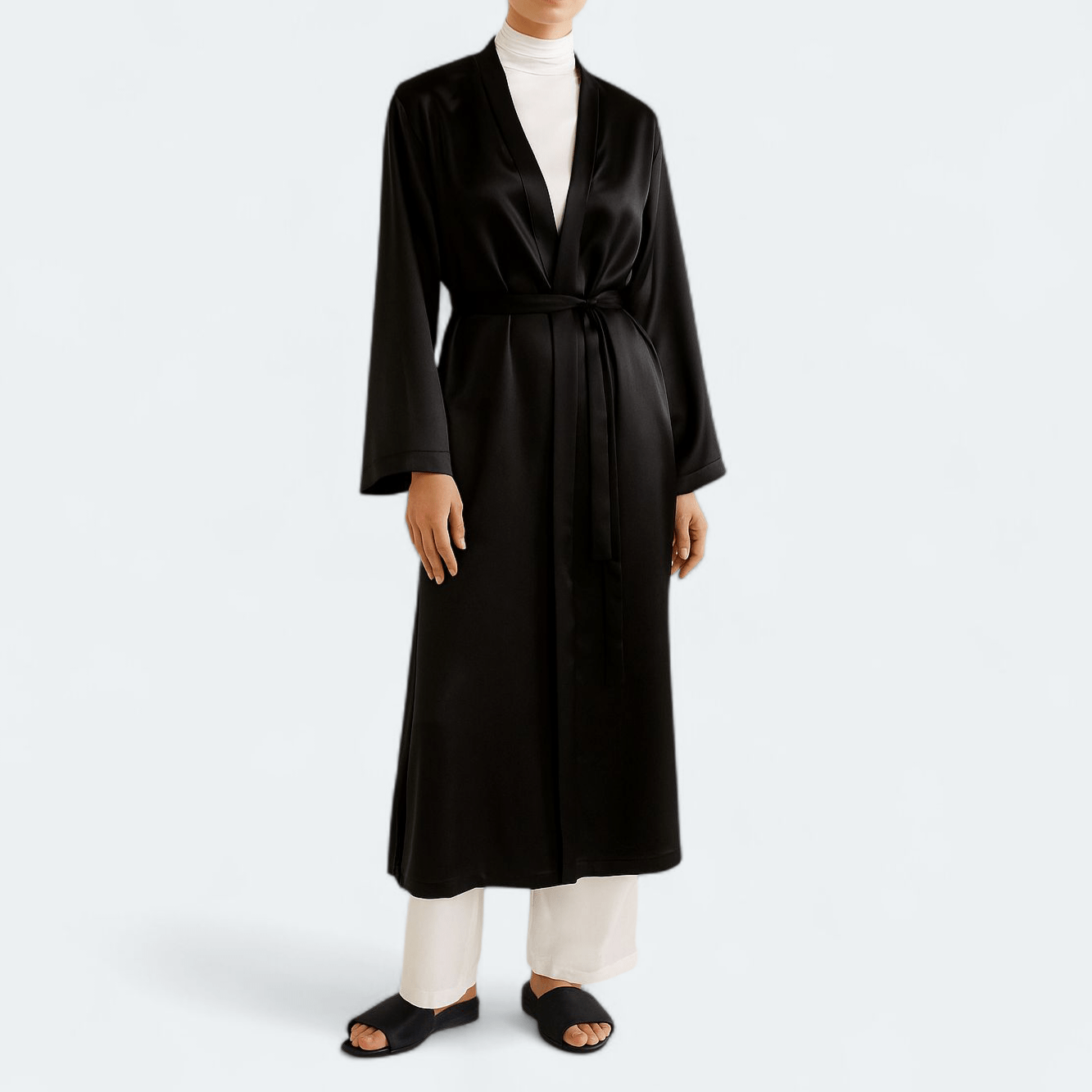 ربدوشامبر ساتن مشکی بلند کلاسیک
