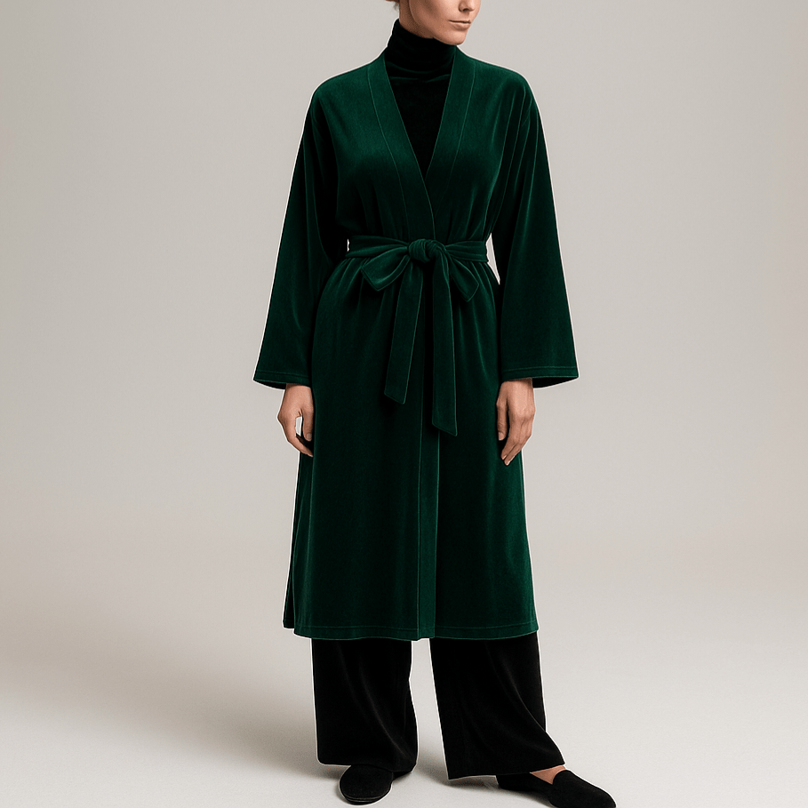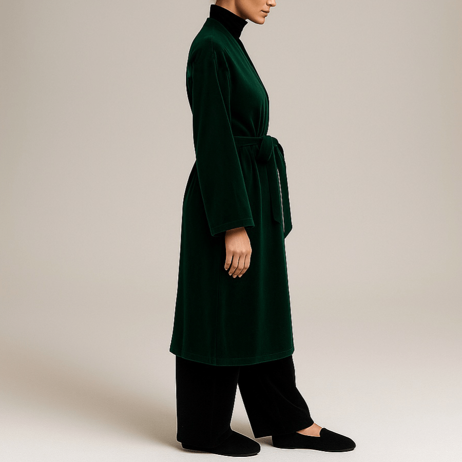 ربدوشامبر مخمل میدی کلاسیک سبز کله غازی قد 110cm