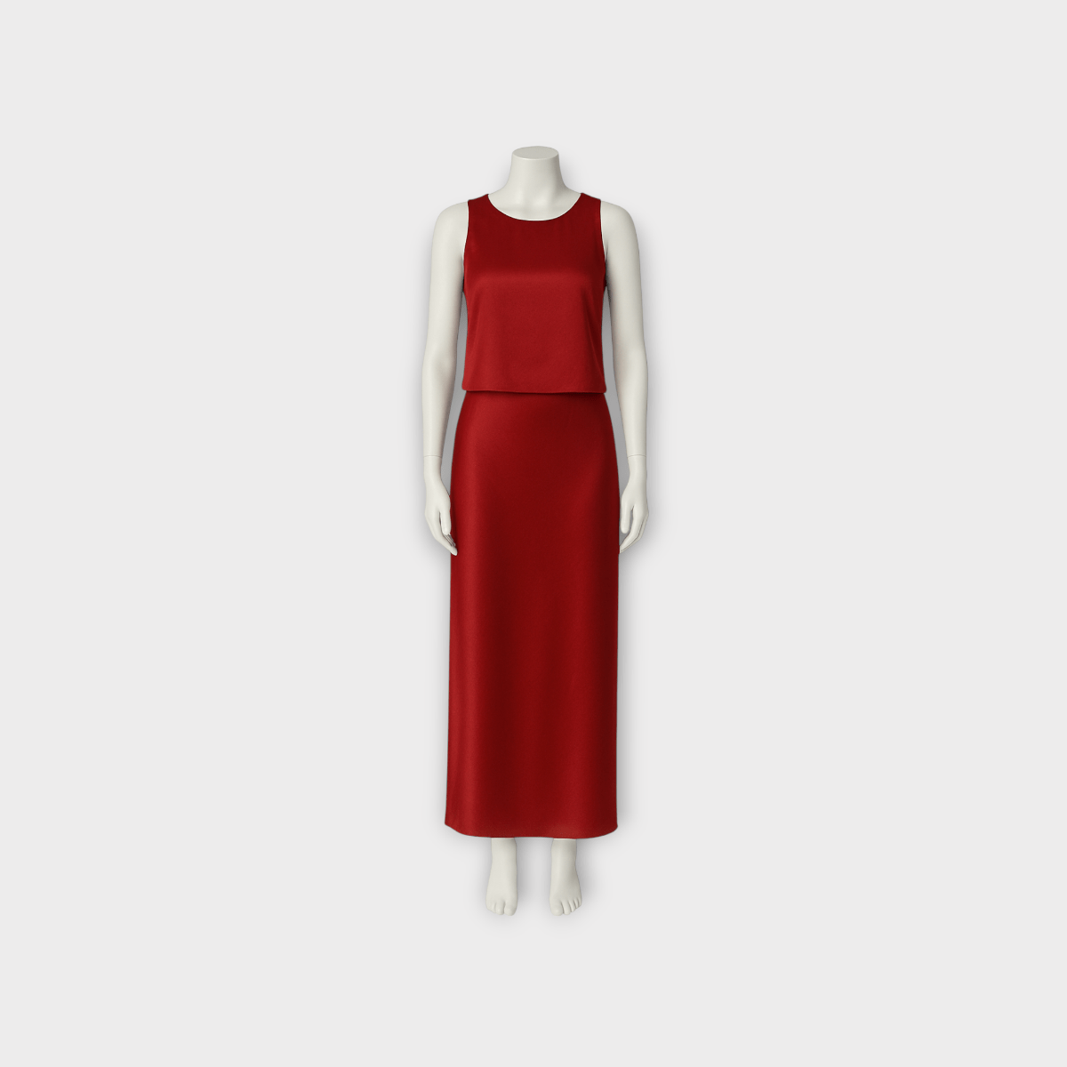 ست تاپ و دامن ساتن قرمز سایز 32 تا 62 (رنگبندی موجود)
