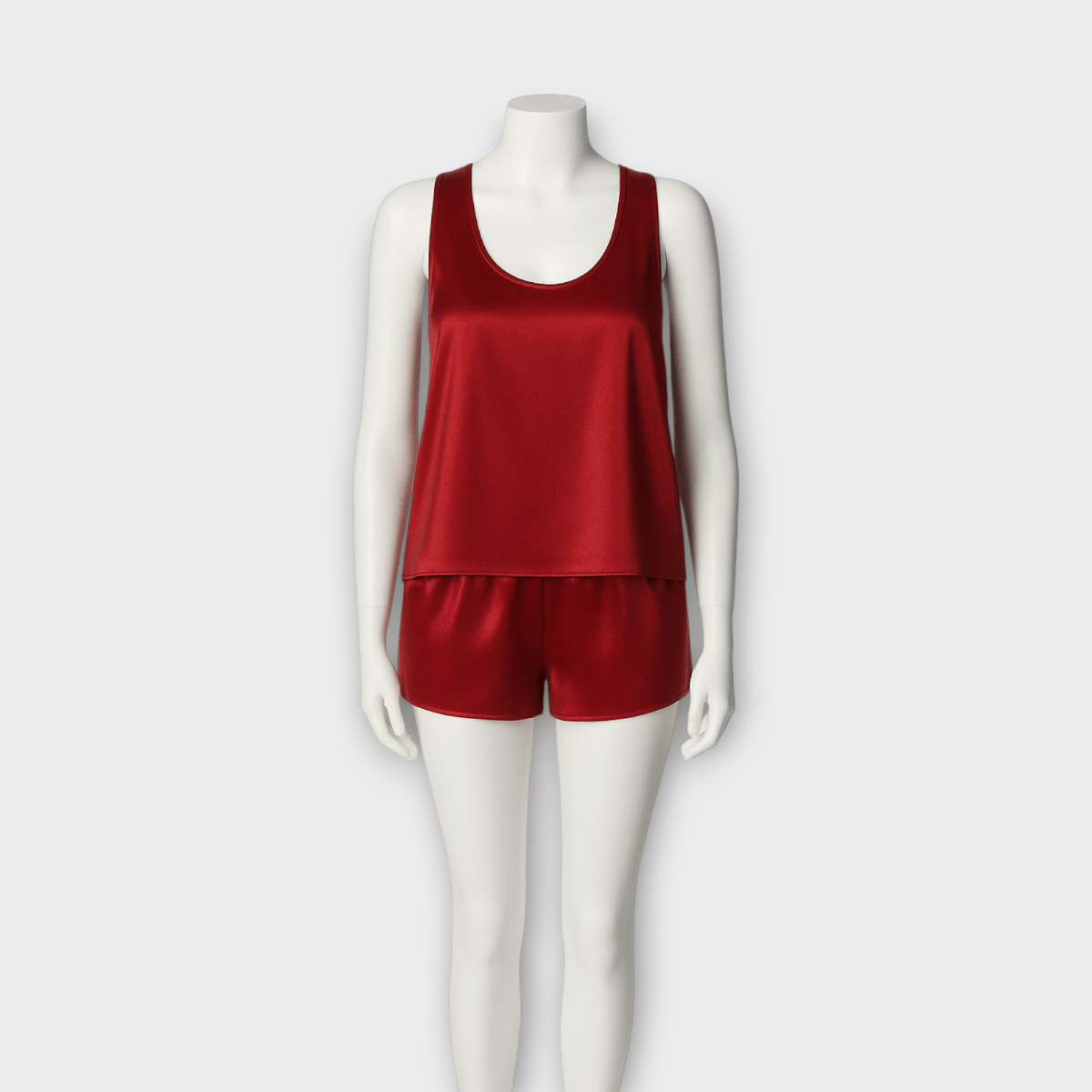 تاپ یقه شل و شلوارک راه راه قرمز ساتن سایز 32 تا 62