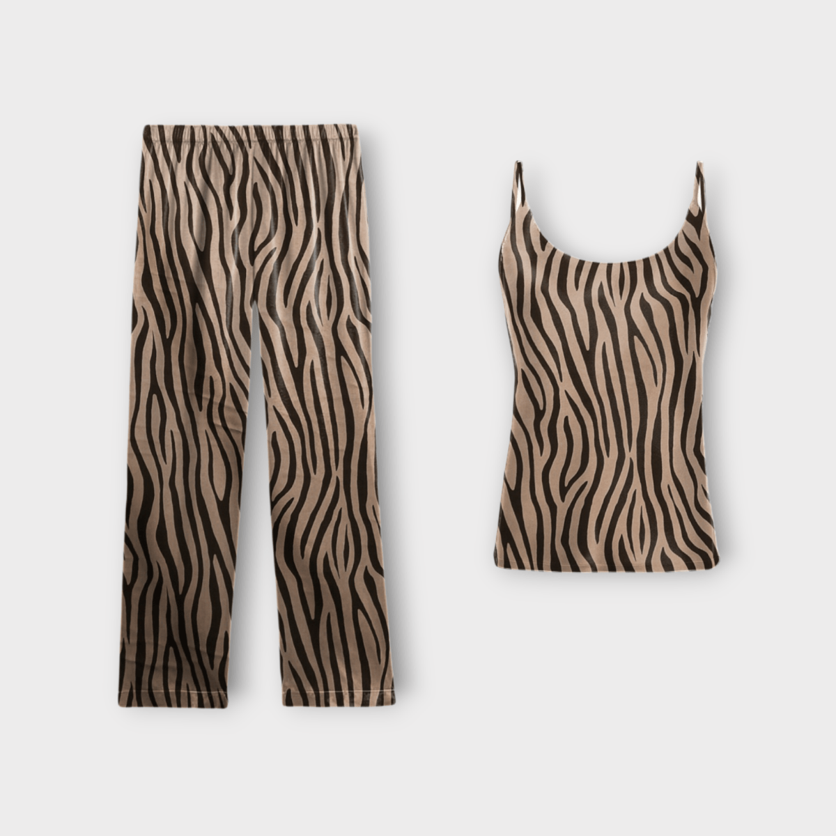 ست تاپ یقه شل و شلوار راسته زبرا کرپ نخ