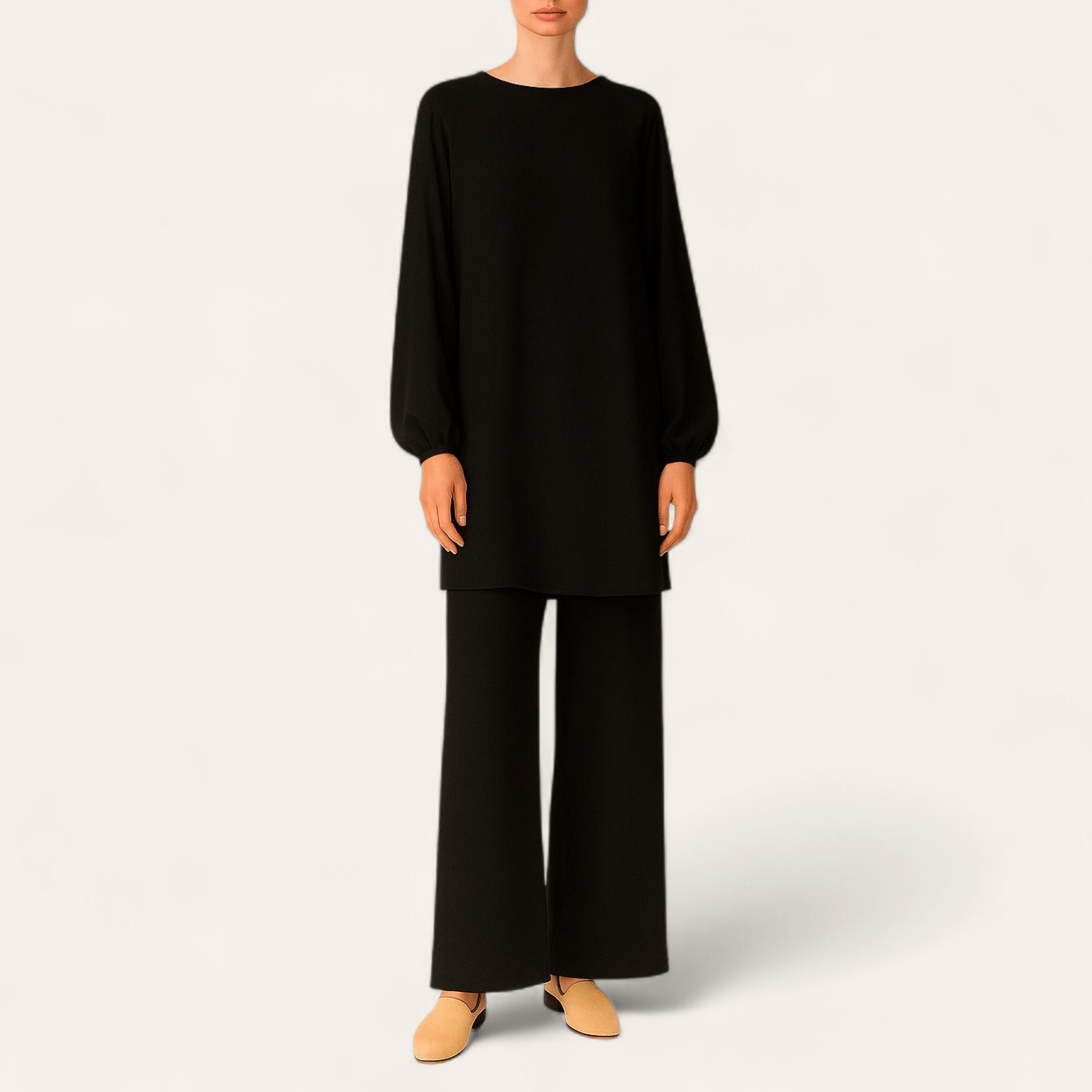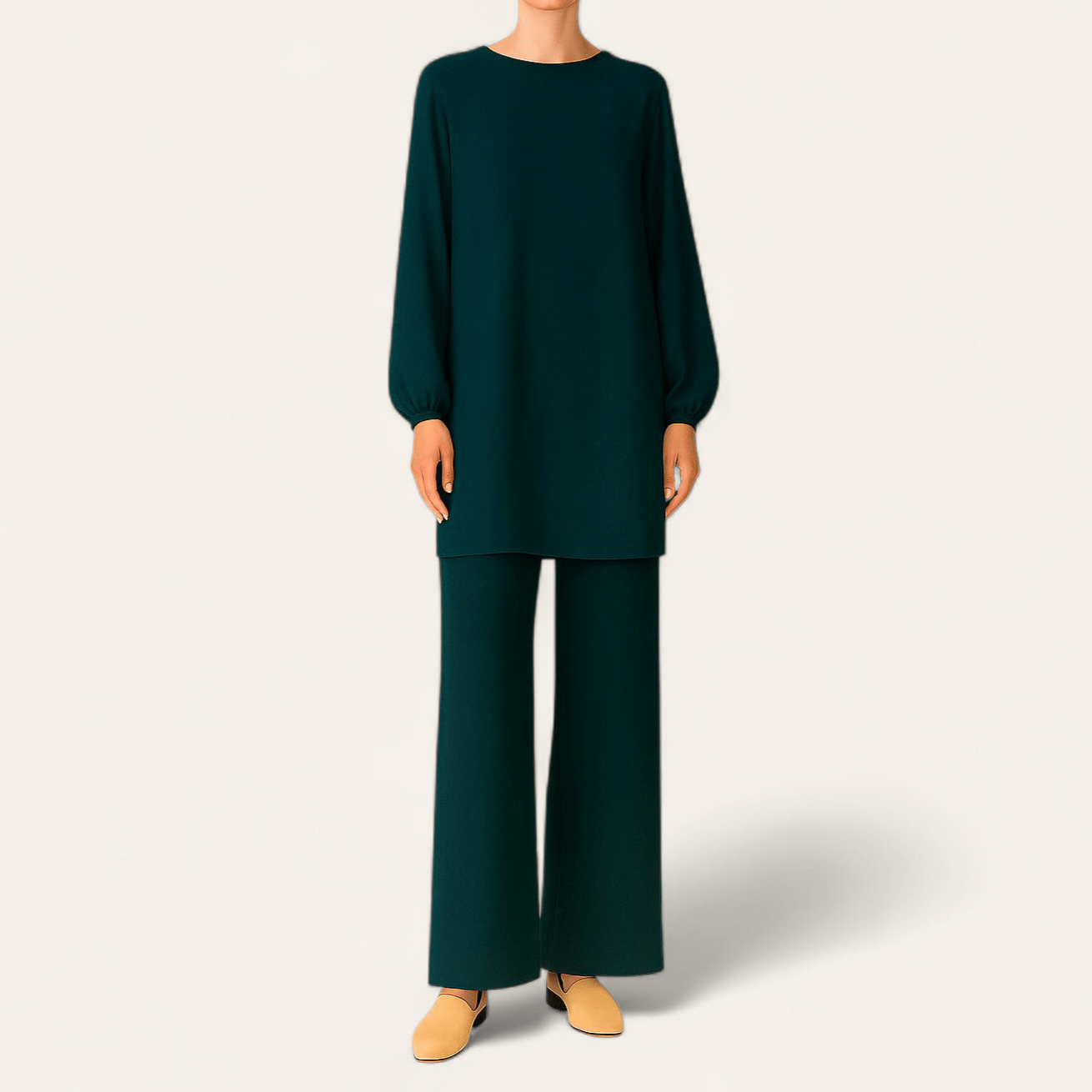 ست تونیک مانتویی و شلوار بگ سبز کله غازی نخی ابروبادی