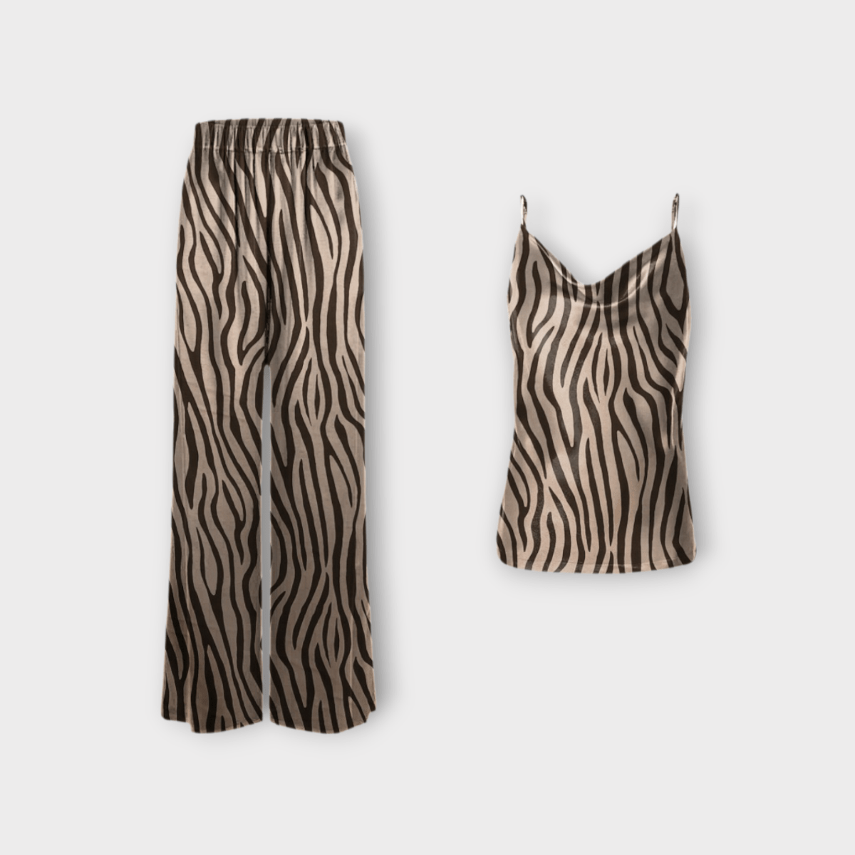 ست زبرا تاپ یقه شل و شلوار راسته کمرکش کرپ نخ