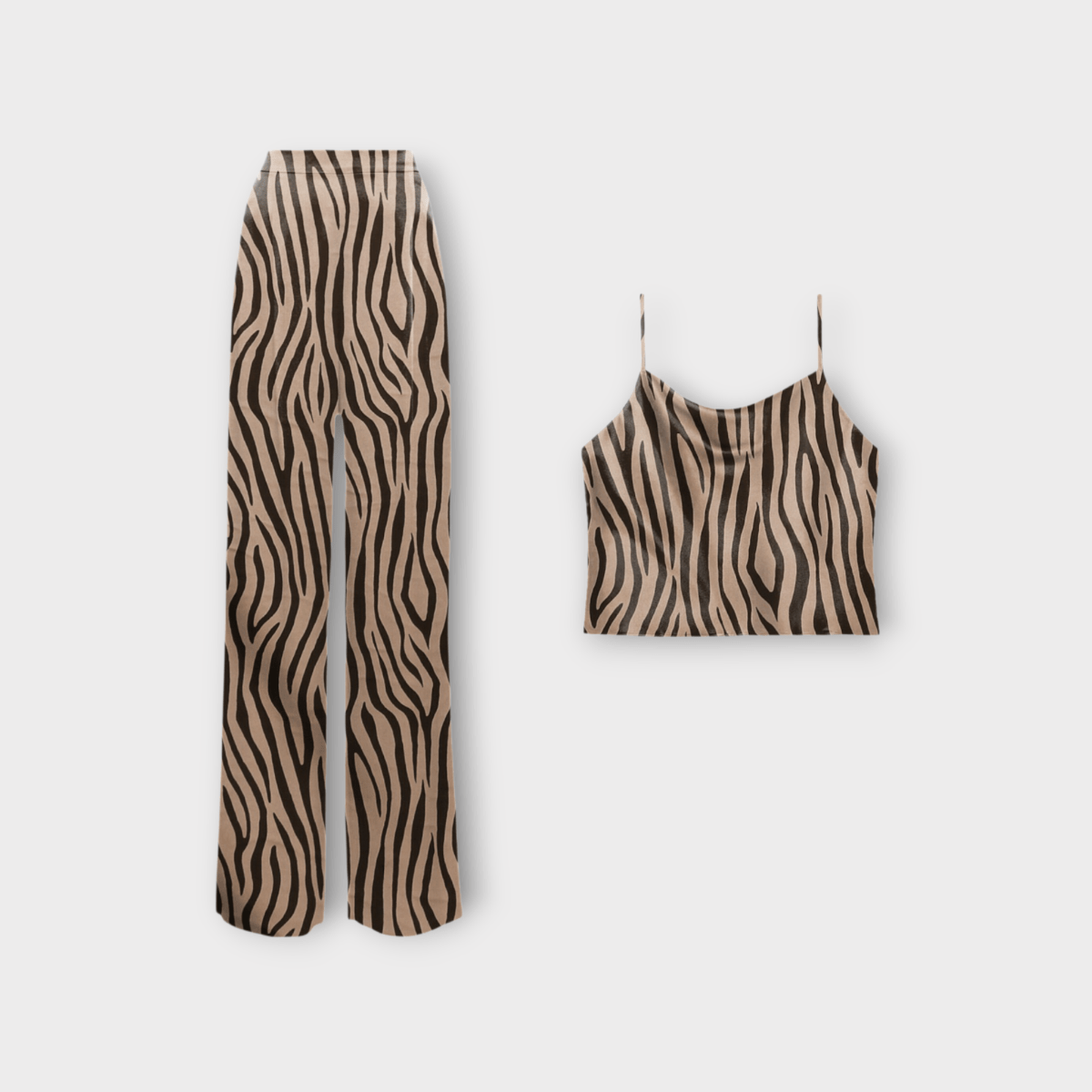 ست زبرا کراپ تاپ و شلوار بگ کرپ نخ