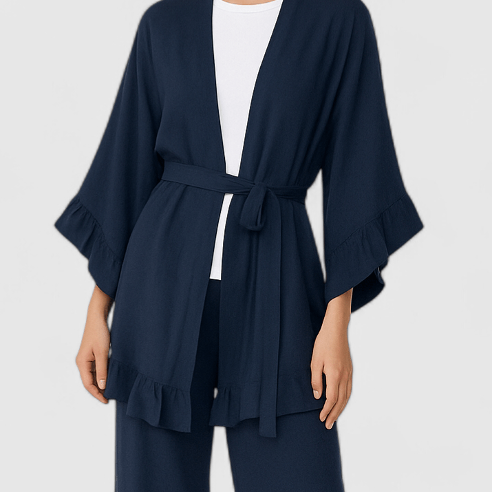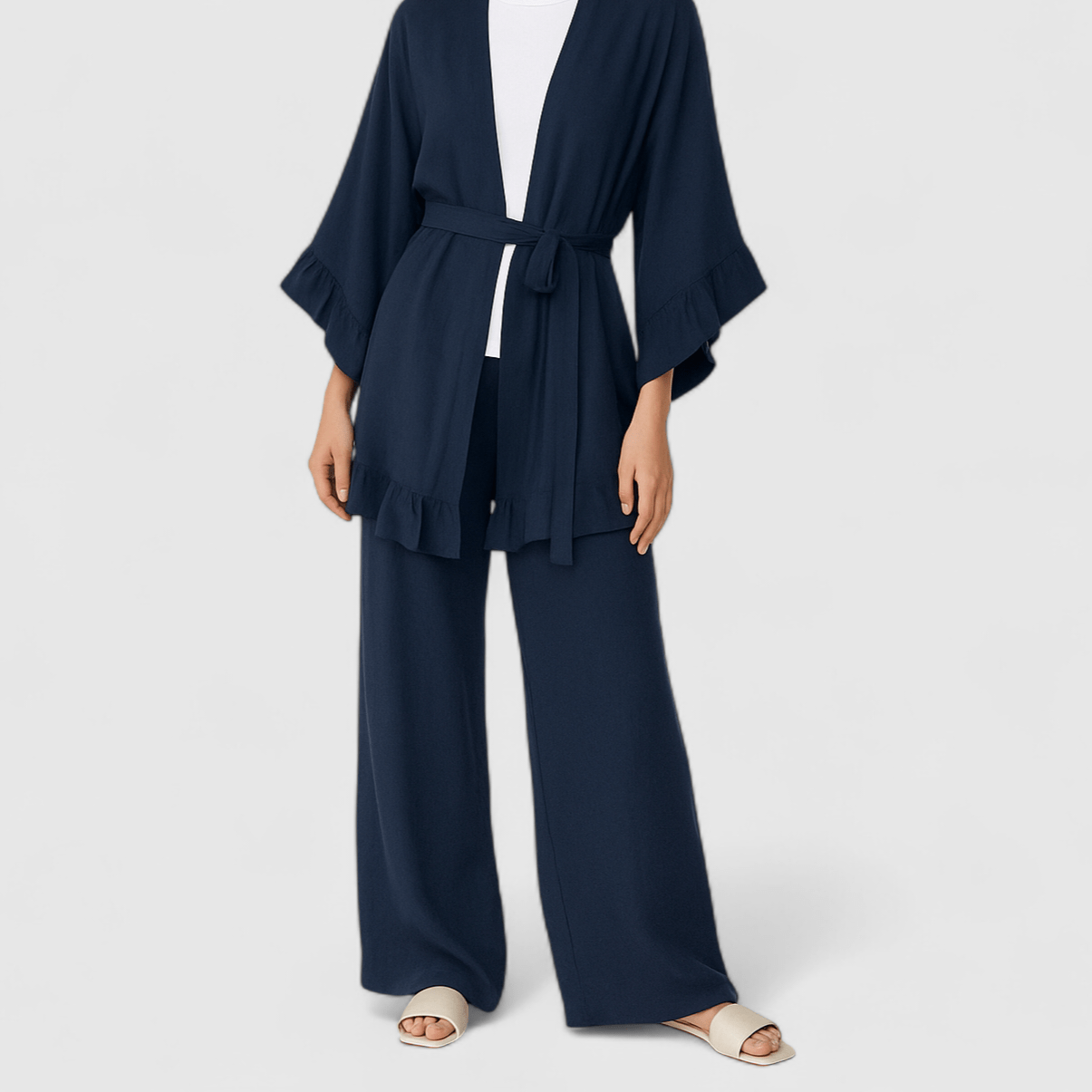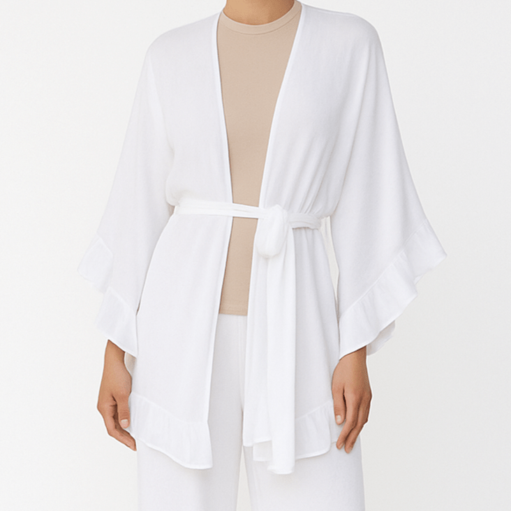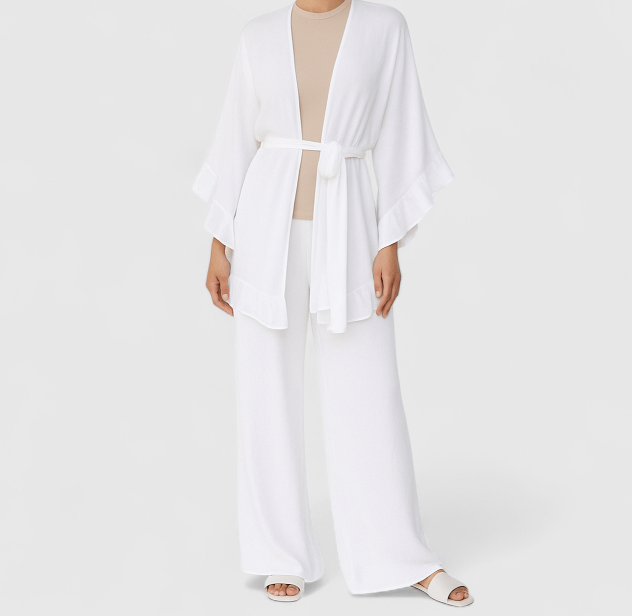 ست مانتو رافلدار و شلوار نخی ابروبادی سفید