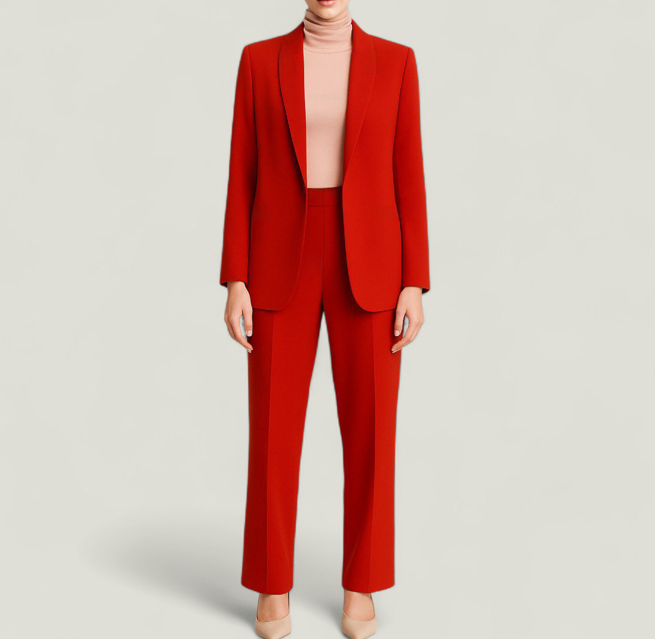 ست کت مانتویی و شلوار مجلسی قرمز کرپ