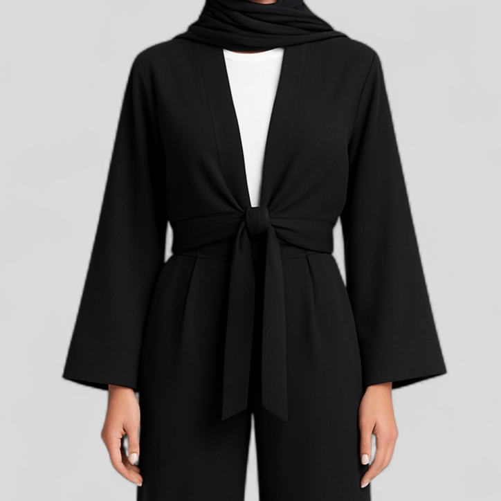 ست کت کراپ گره ای و شلوار راسته پیله دار کرد مشکی