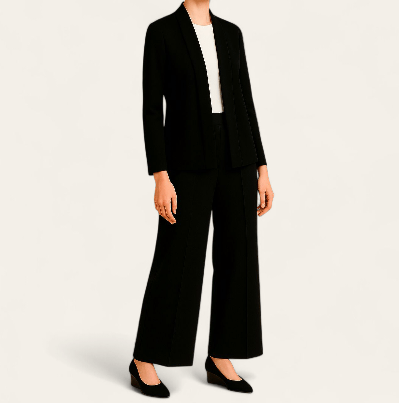 ست کت یقه برگردان و شلوار بگ کرپ مشکی