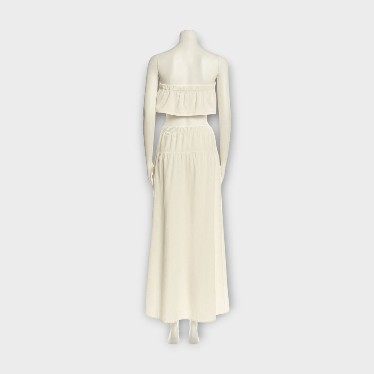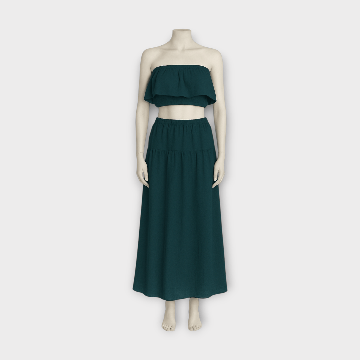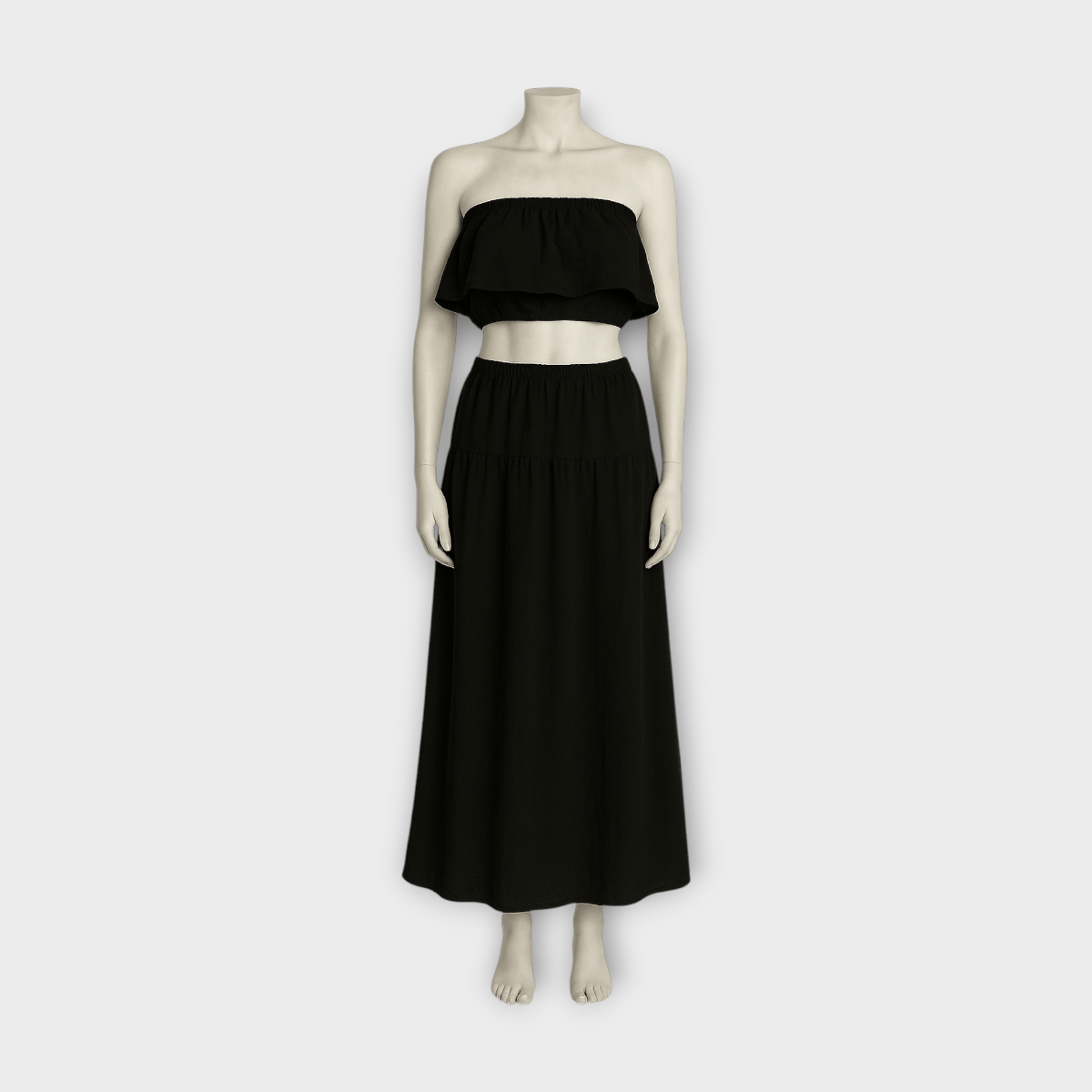 ست کراپ تاپ دکلته فلوئنس و دامن دودامنه چین دار نخی ابروبادی