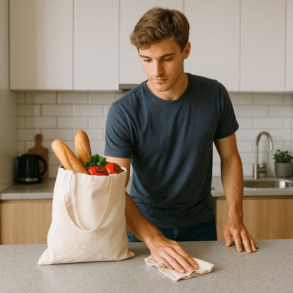 ست کیف خرید و دستمال تنظیف الیاف طبیعی متقال