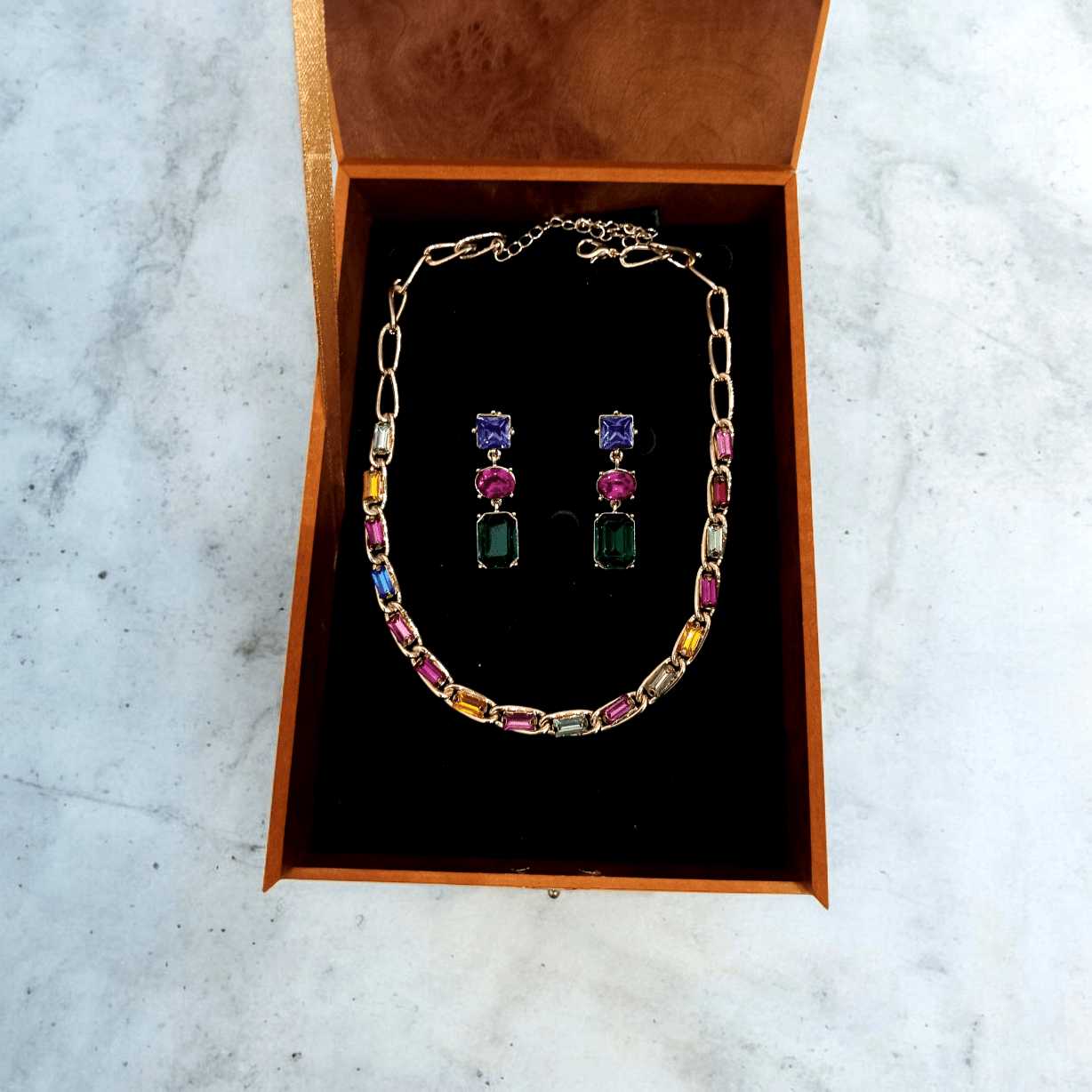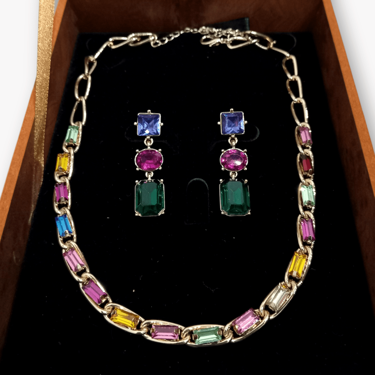 ست گردنبند و گوشواره جواهر سنگ رنگی