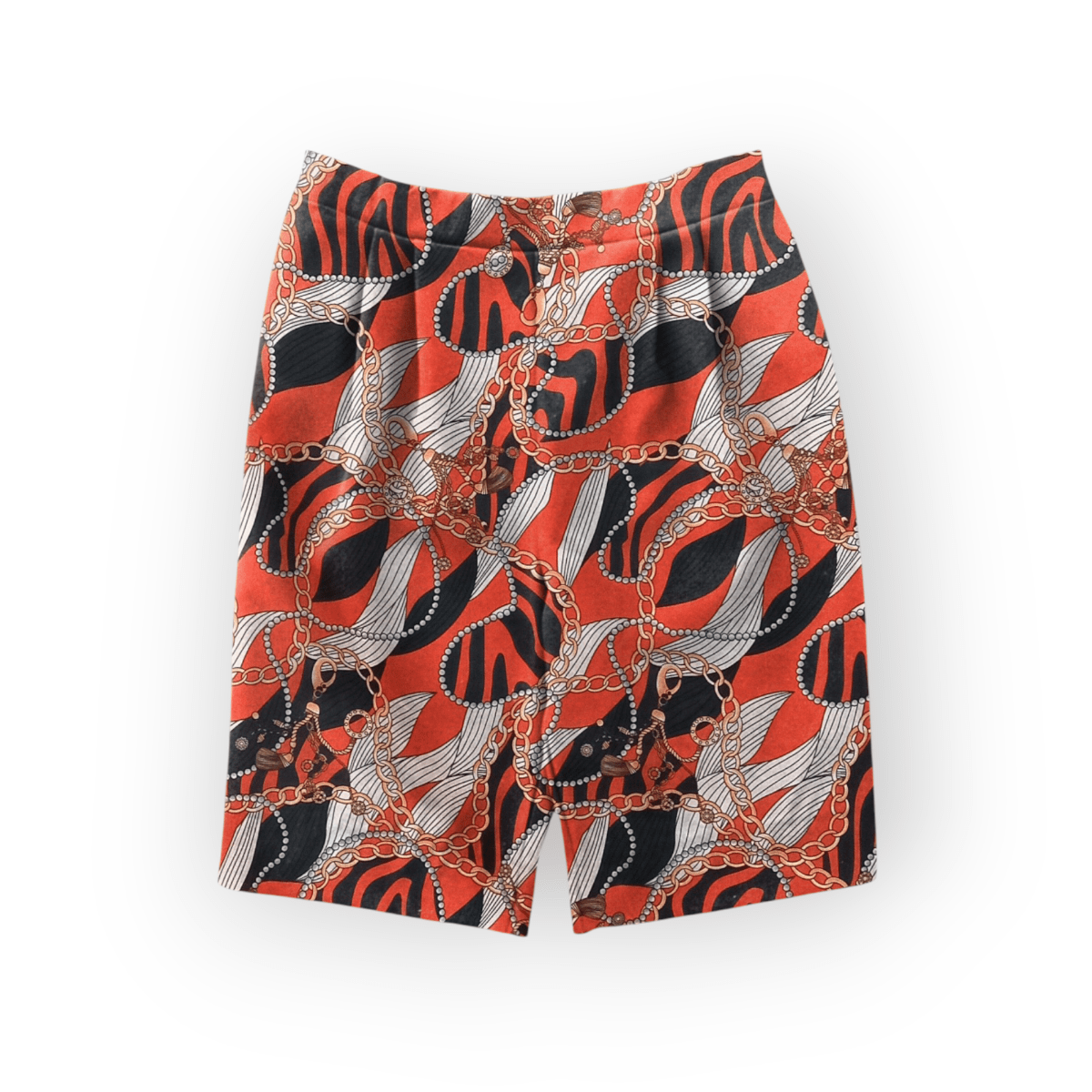 شلوارک پیله دار طرح زنجیر با زمینه قرمز پشت کش کرپ نخ