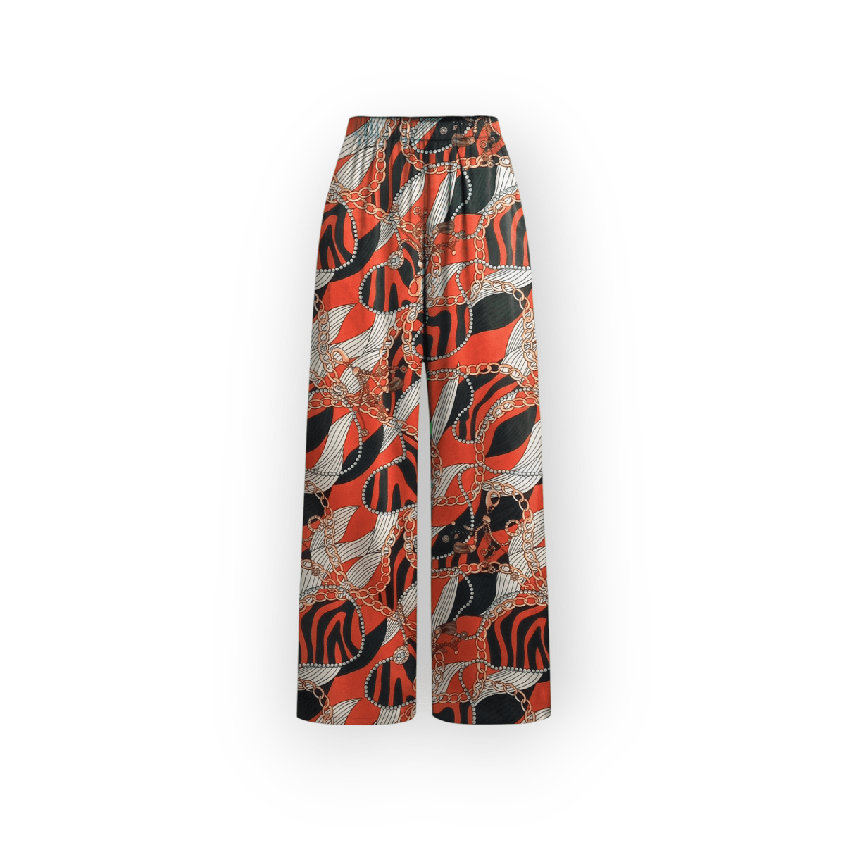 شلوار بگ طرح زنجیر با زمینه قرمز پشت کش کرپ نخ
