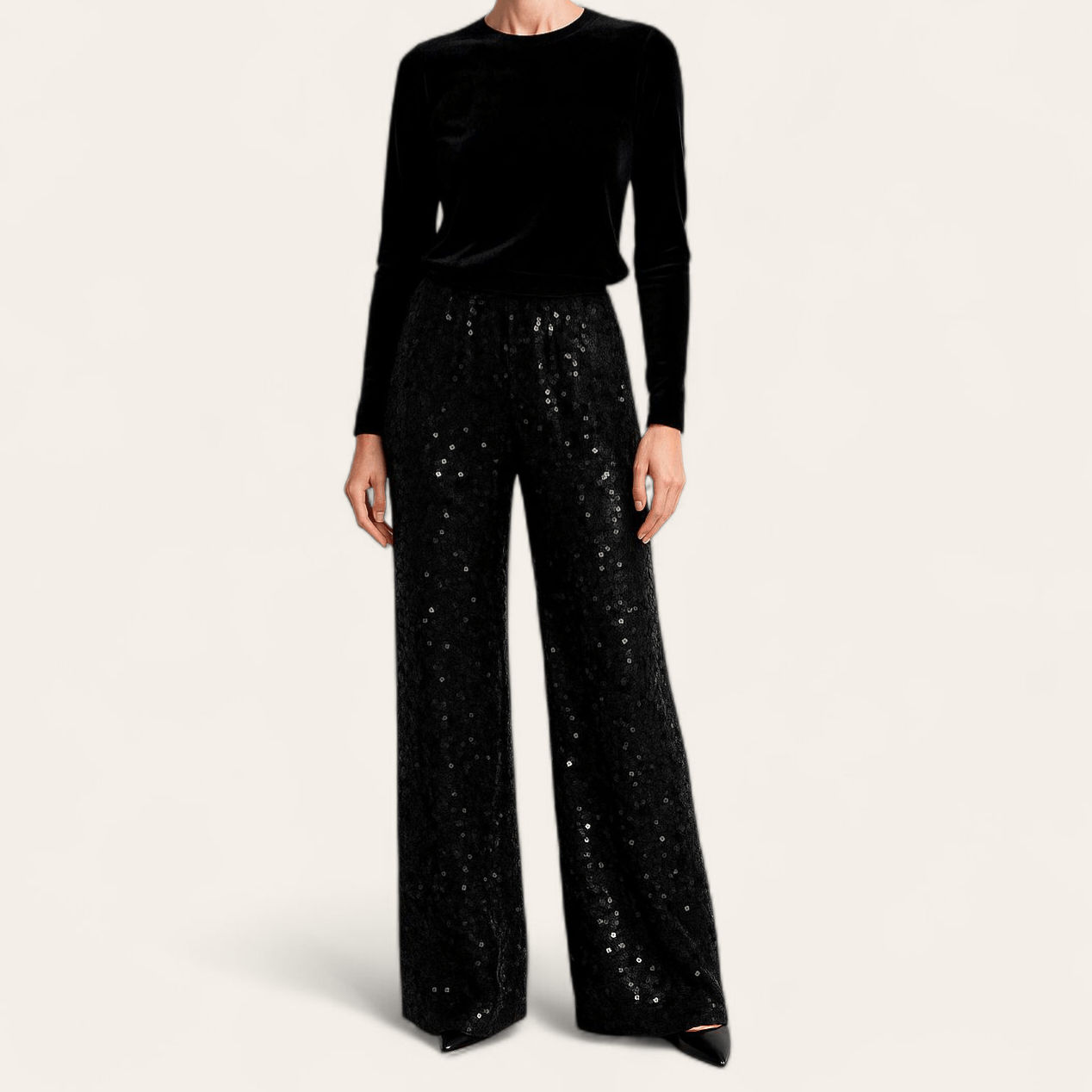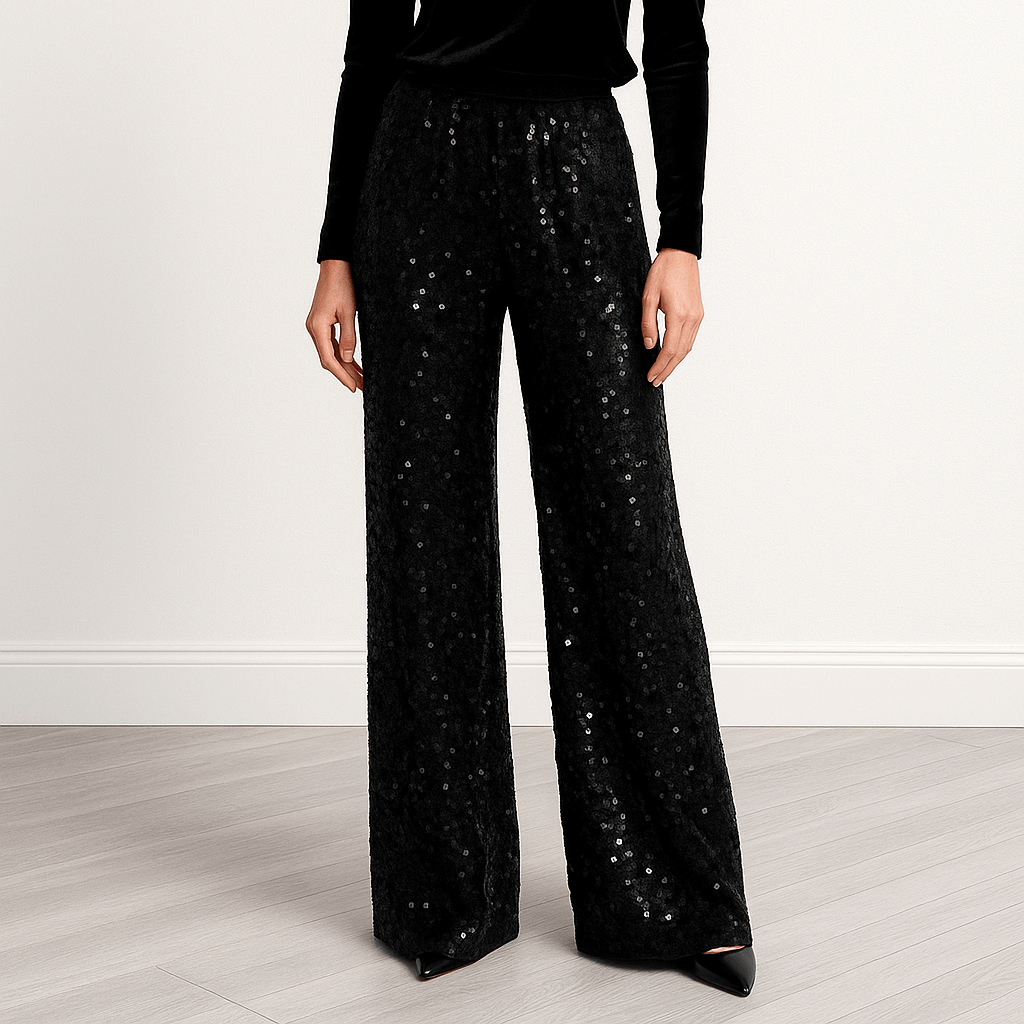 شلوار بگ کمرکش مخمل پولکی پشت کش مشکی