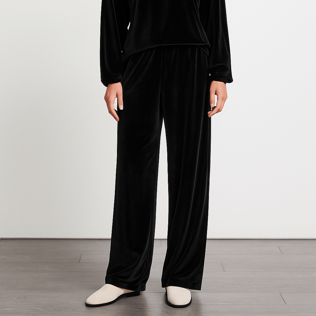 شلوار راسته مخمل کمرکش مشکی سایز 32 تا 62 قد 100cm