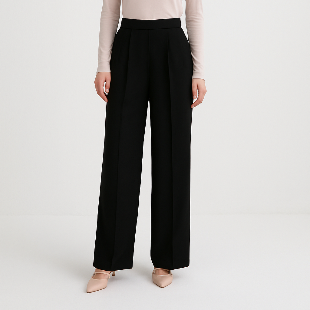 شلوار پیله دار راسته کرپ پشت کش مشکی سایز 32 تا 62 (رنگبندی موجود)