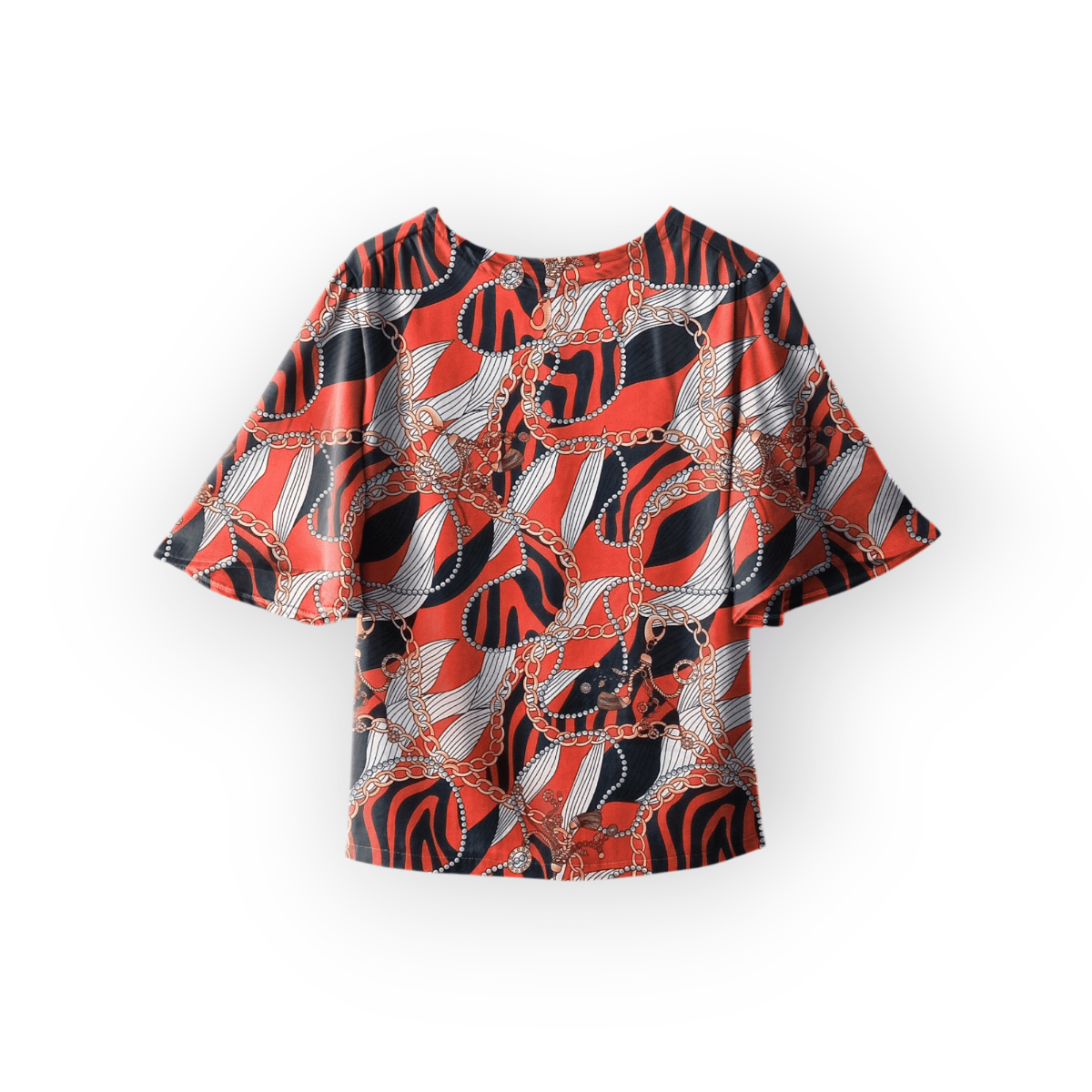 شومیز آستین انجل طرح زنجیر با زمینه قرمز کرپ نخ