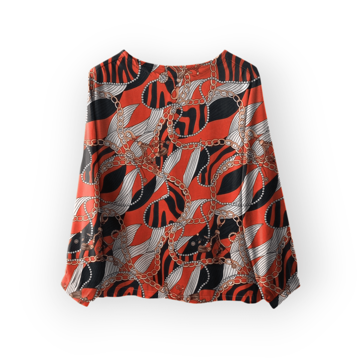شومیز آستین پفی طرح زنجیر با زمینه قرمز کرپ نخ