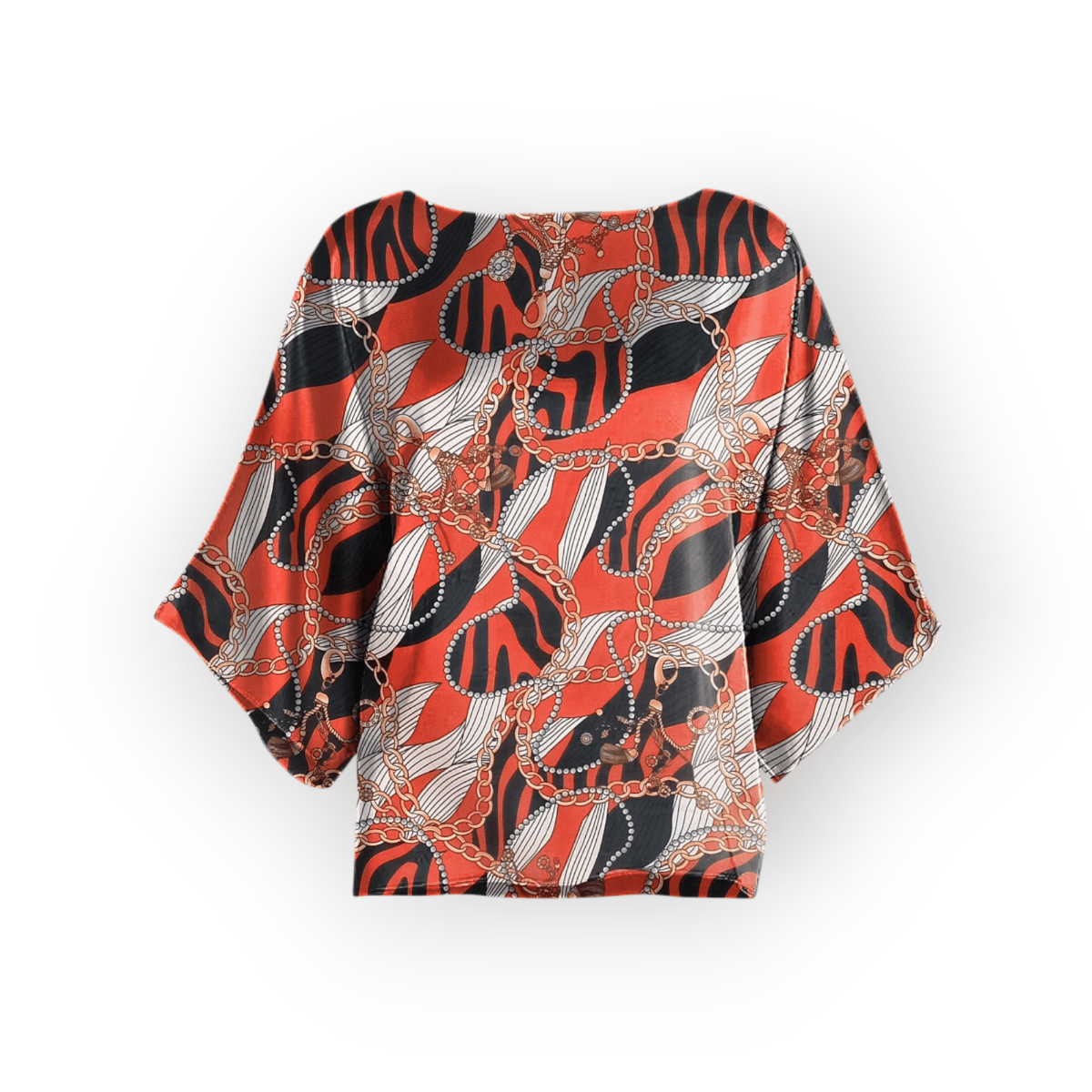 شومیز آستین کیمونو طرح زنجیر با زمینه قرمز کرپ نخ
