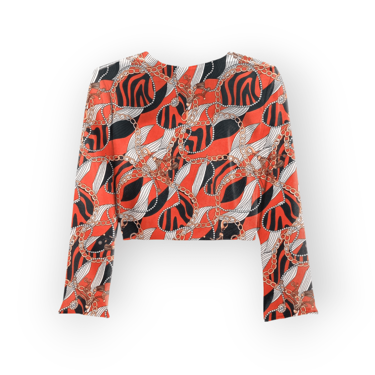شومیز کراپ طرح زنجیر با زمینه قرمز کرپ نخ آستین بلند