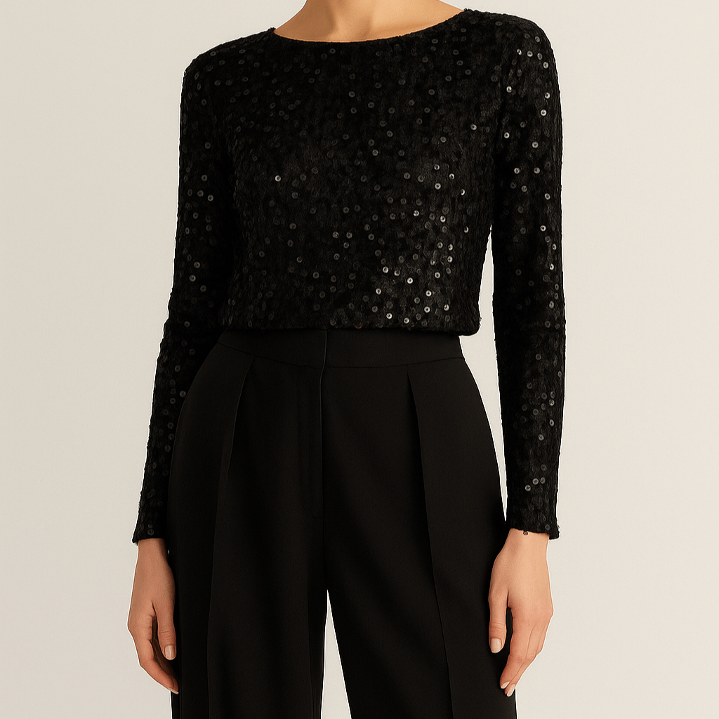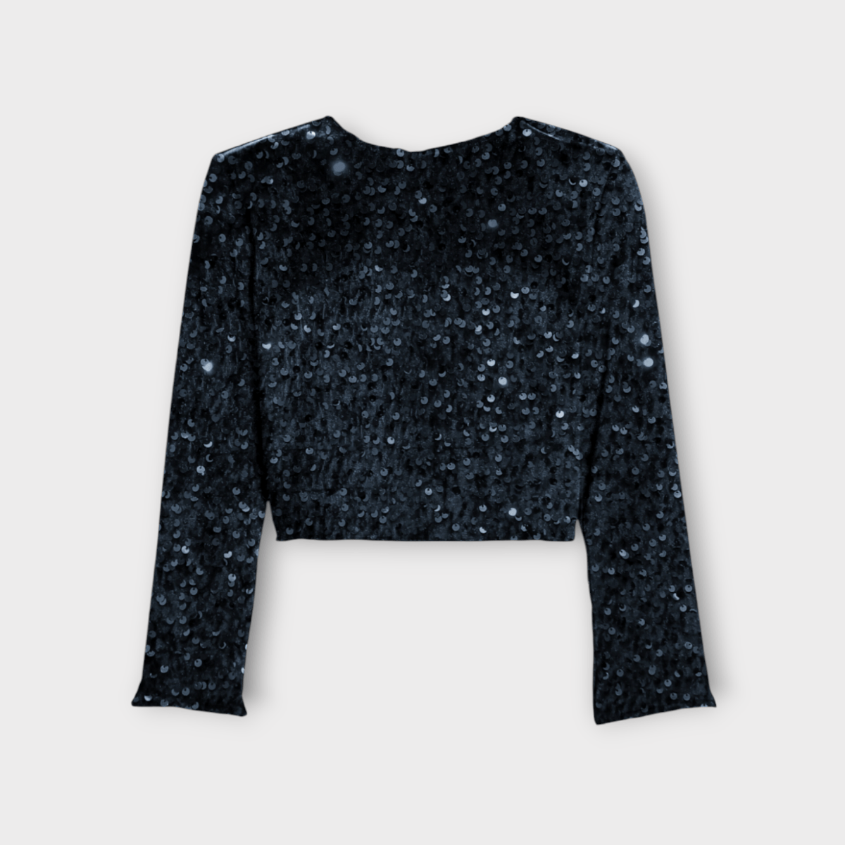 شومیز کراپ مخمل پولکی مشکی آستین بلند