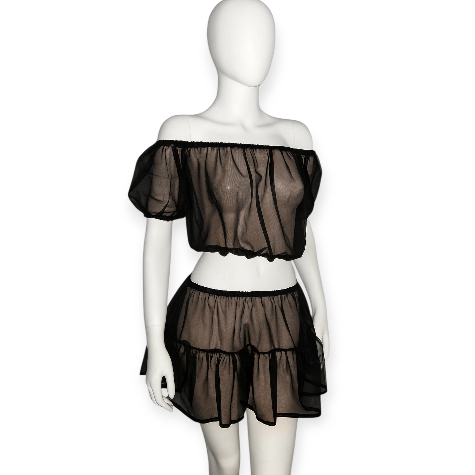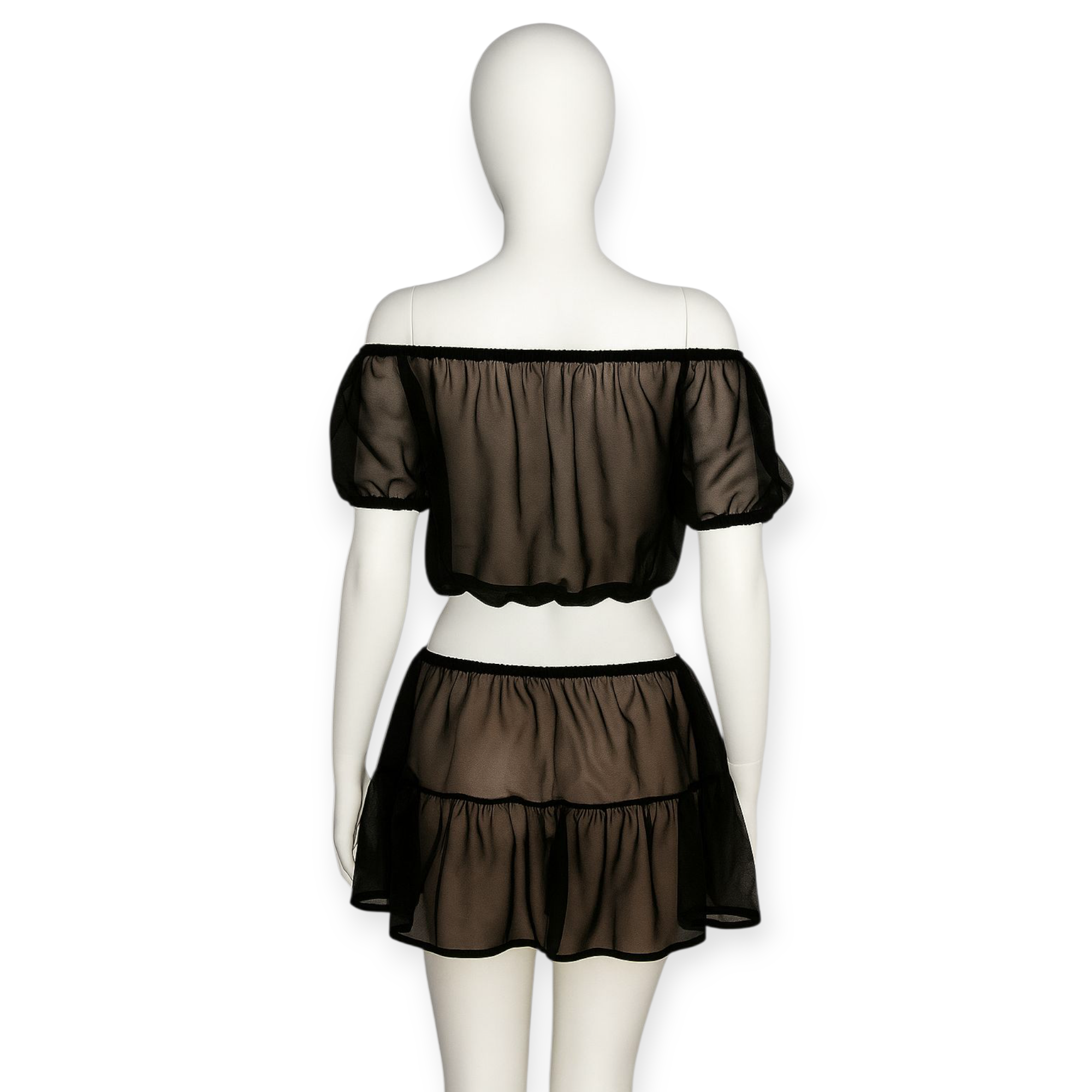 لباس خواب کراپ تاپ دکلته و دامن توری مشکی