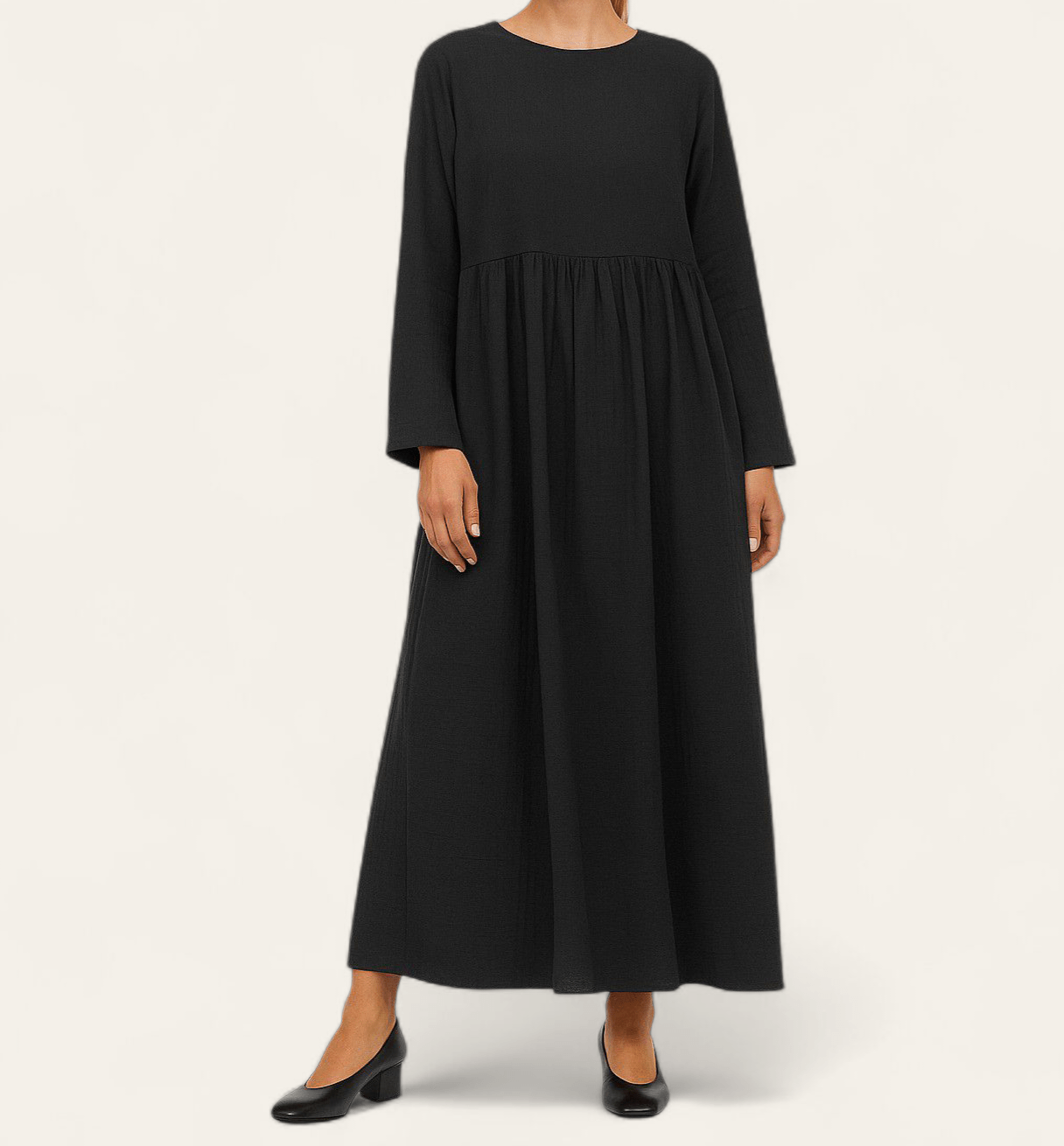 مانتو پیراهنی بلند مشکی نخی ابروبادی