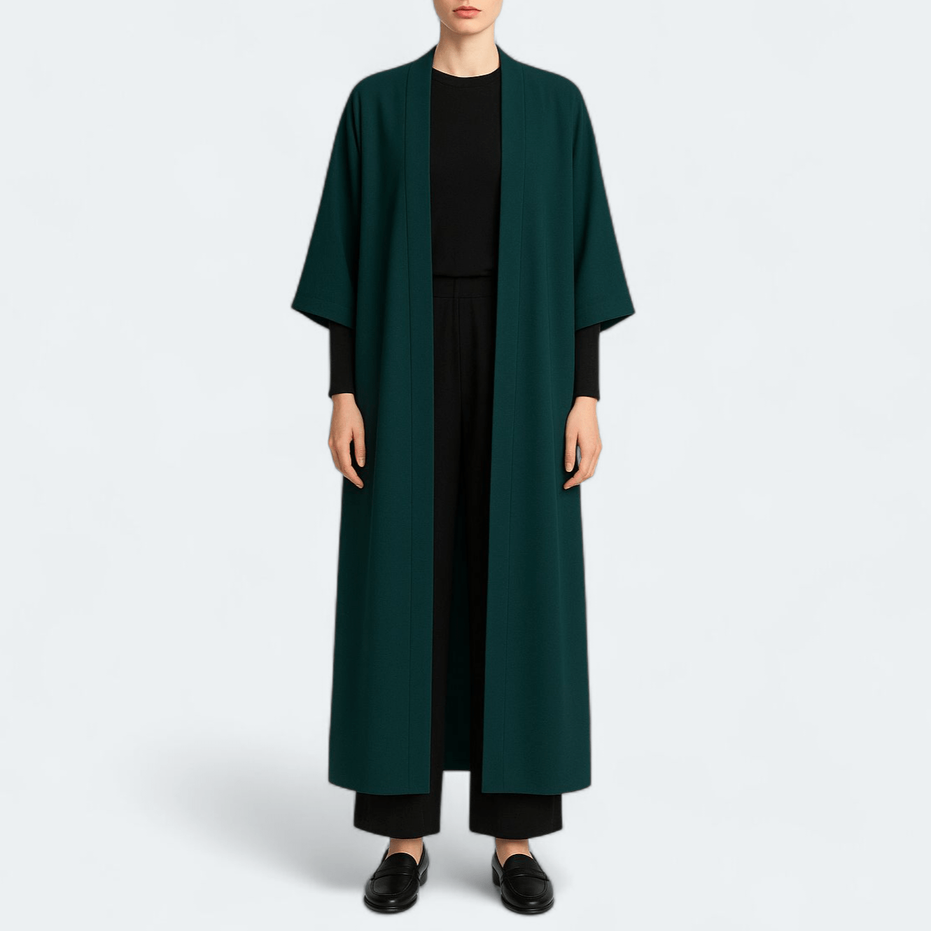 مانتو کیمونو بلند آستین سه ربع سبز کله غازی سایز 32 تا 62 (رنگبندی موجود)